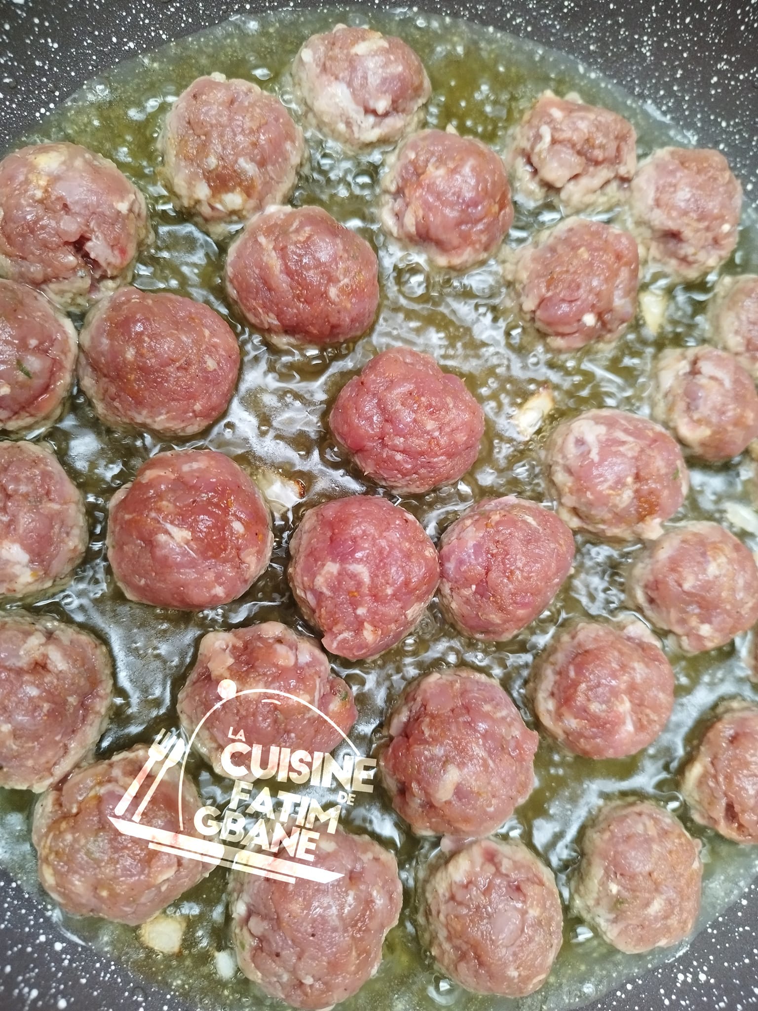 - Faites dorer les boulettes de viande de tous les côtés jusqu’à ce qu’elles soient bien cuites.