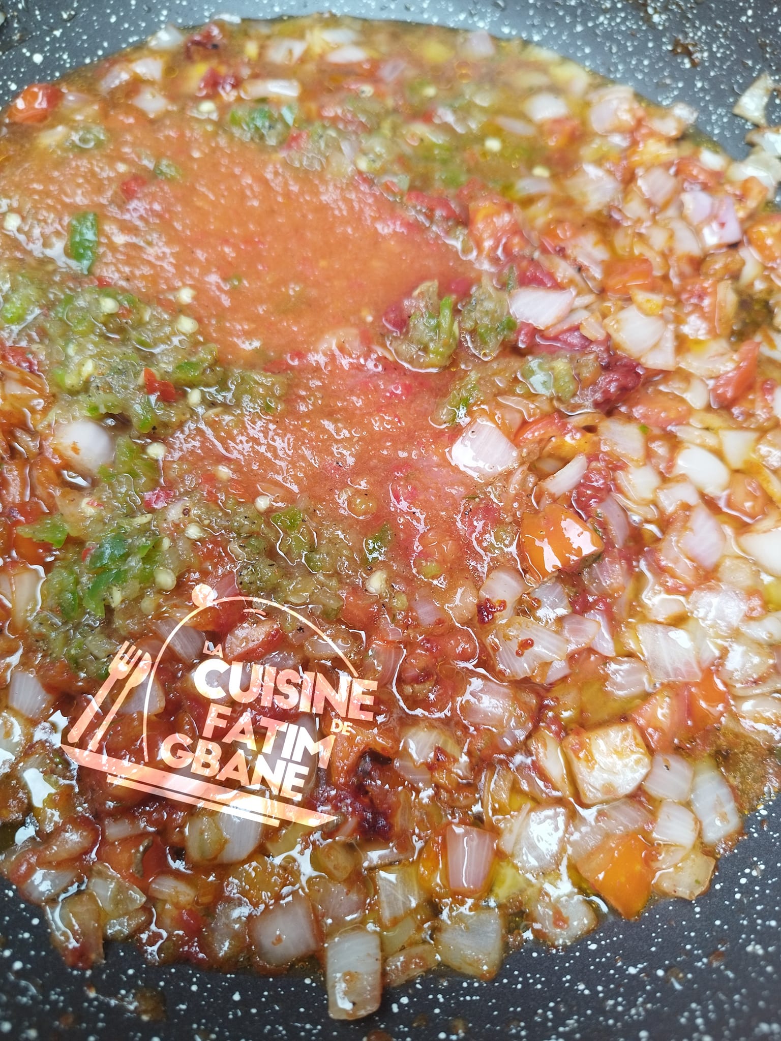 - Incorporez le concentré de tomate et la purée de tomates fraîches.