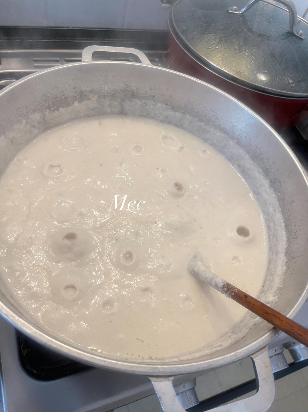 - Une fois la viande bien cuite, incorporez la pâte d’arachide dans la marmite.