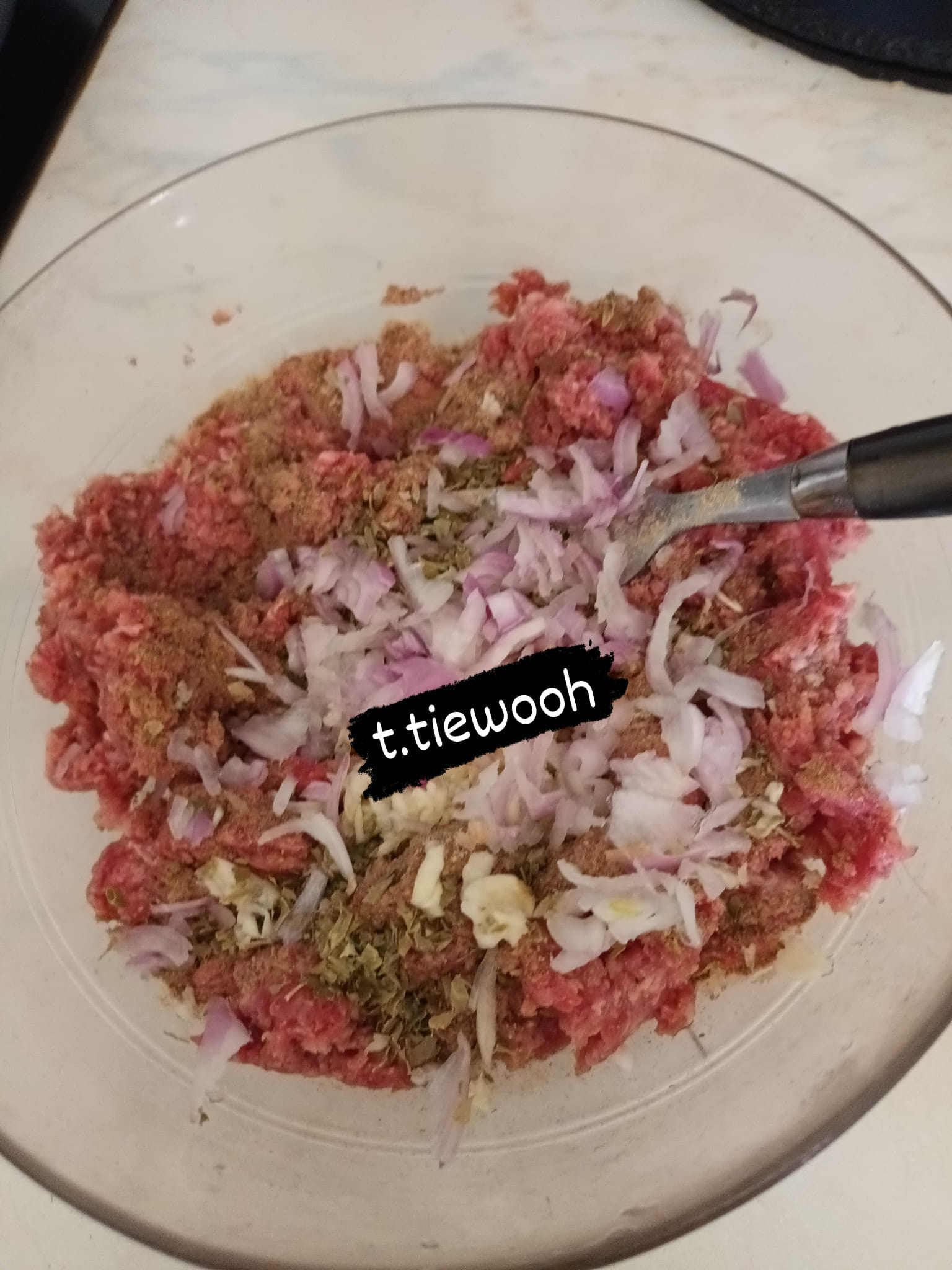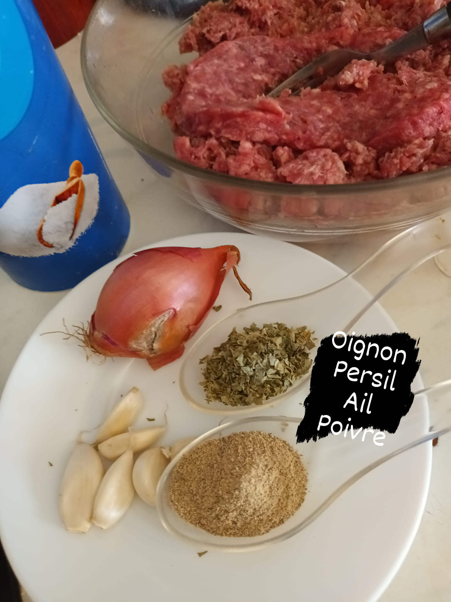 - Dans un grand bol, combinez la viande hachée, l’oignon haché, l’ail râpé et le persil frais.