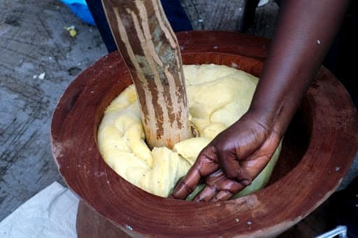 - Poursuivez la cuisson jusqu’à ce que le mélange épaississe et atteigne une consistance élastique, typique du fufu.