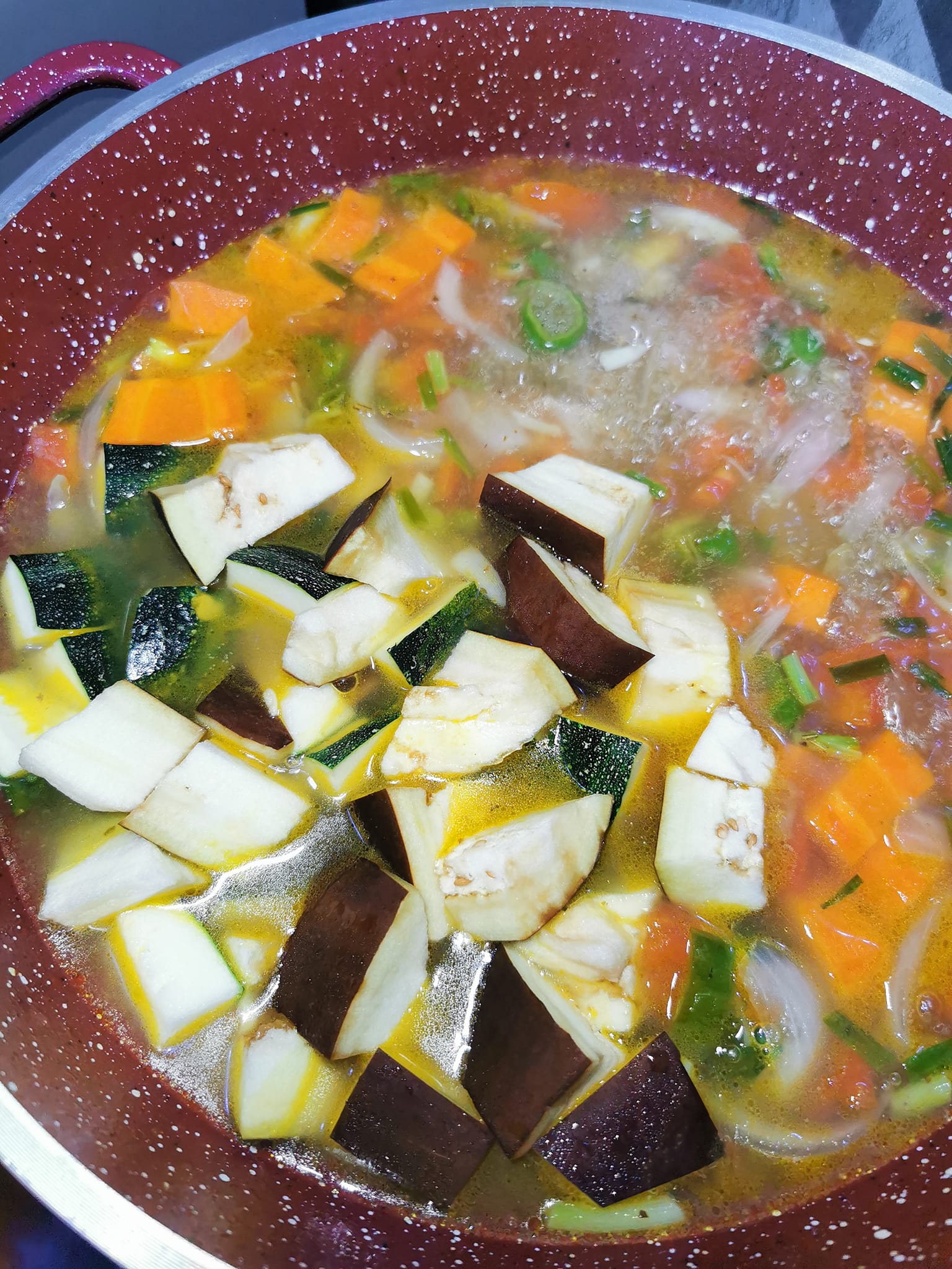 - Ajoutez les aubergines et les courgettes. Poursuivez la cuisson pendant 15 minutes.