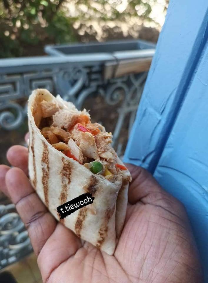 - Disposez une portion du mélange poulet-légumes au centre de chaque galette de blé. Repliez les bords pour former un wrap ou servez les galettes à côté en accompagnement.