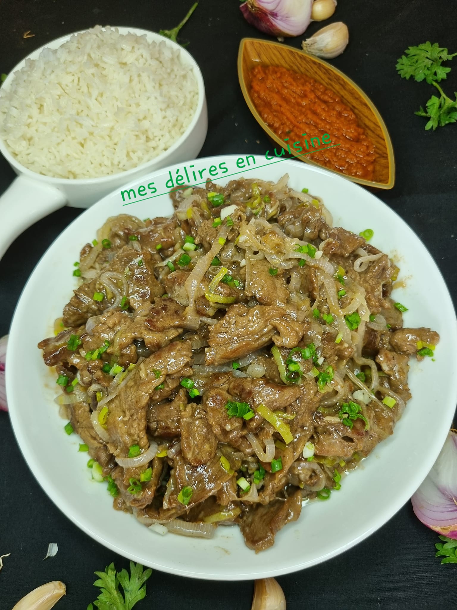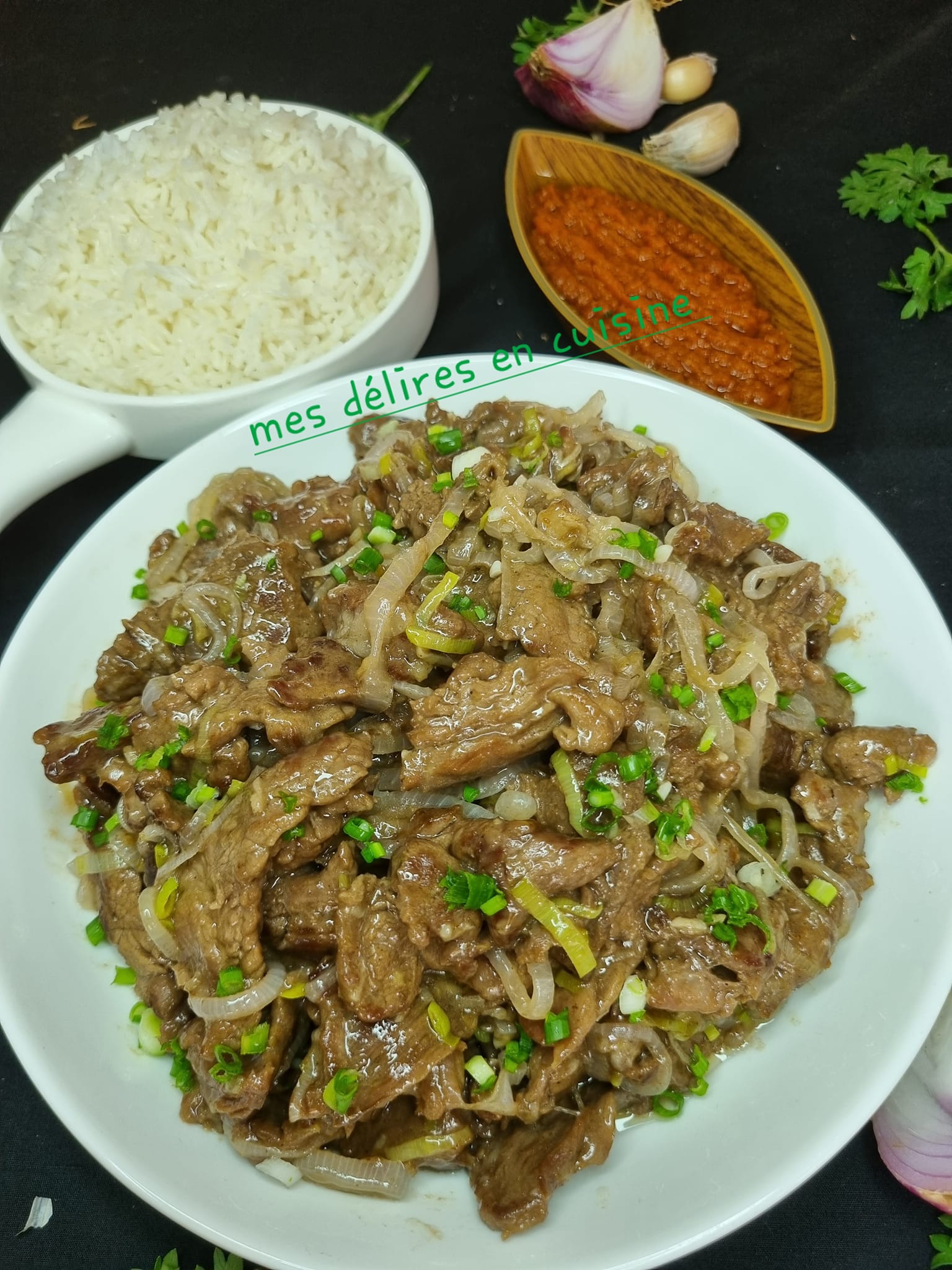 - Ce sauté de bœuf à la sauce soja et aux épices se marie parfaitement avec du riz blanc ou des nouilles sautées.