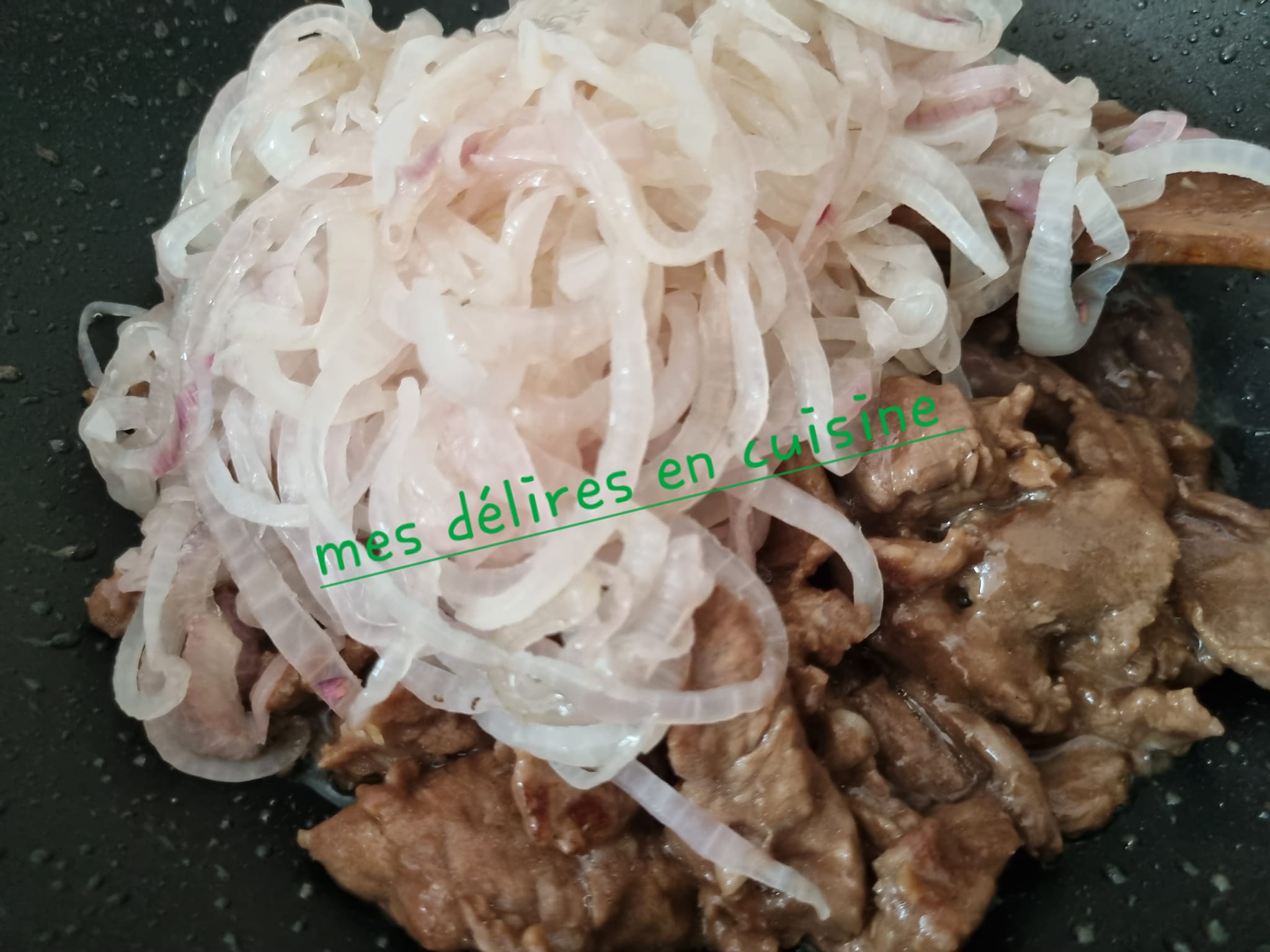 - Remettez les oignons préalablement cuits dans la poêle avec la viande.