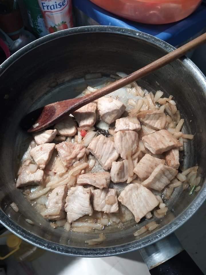 - Faites dorer les lamelles de viande précuite pendant quelques minutes.