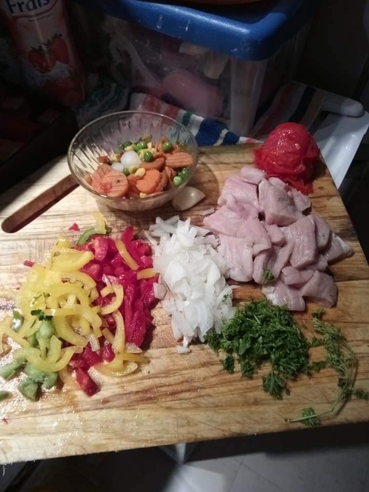 - Hachez finement l’oignon, la tomate, le poivron et le poireau.