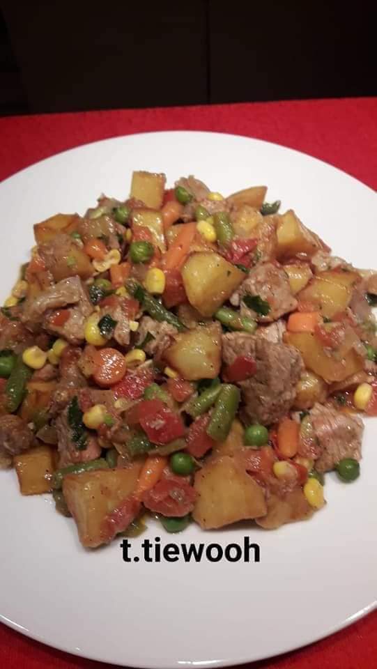 Plongez dans une explosion de saveurs avec ce plat coloré et savoureux, où des quartiers de pommes de terre dorés rencontrent une viande tendre et des légumes croquants. Parfait pour un dîner réconfortant, ce mets allie simplicité et gourmandise.