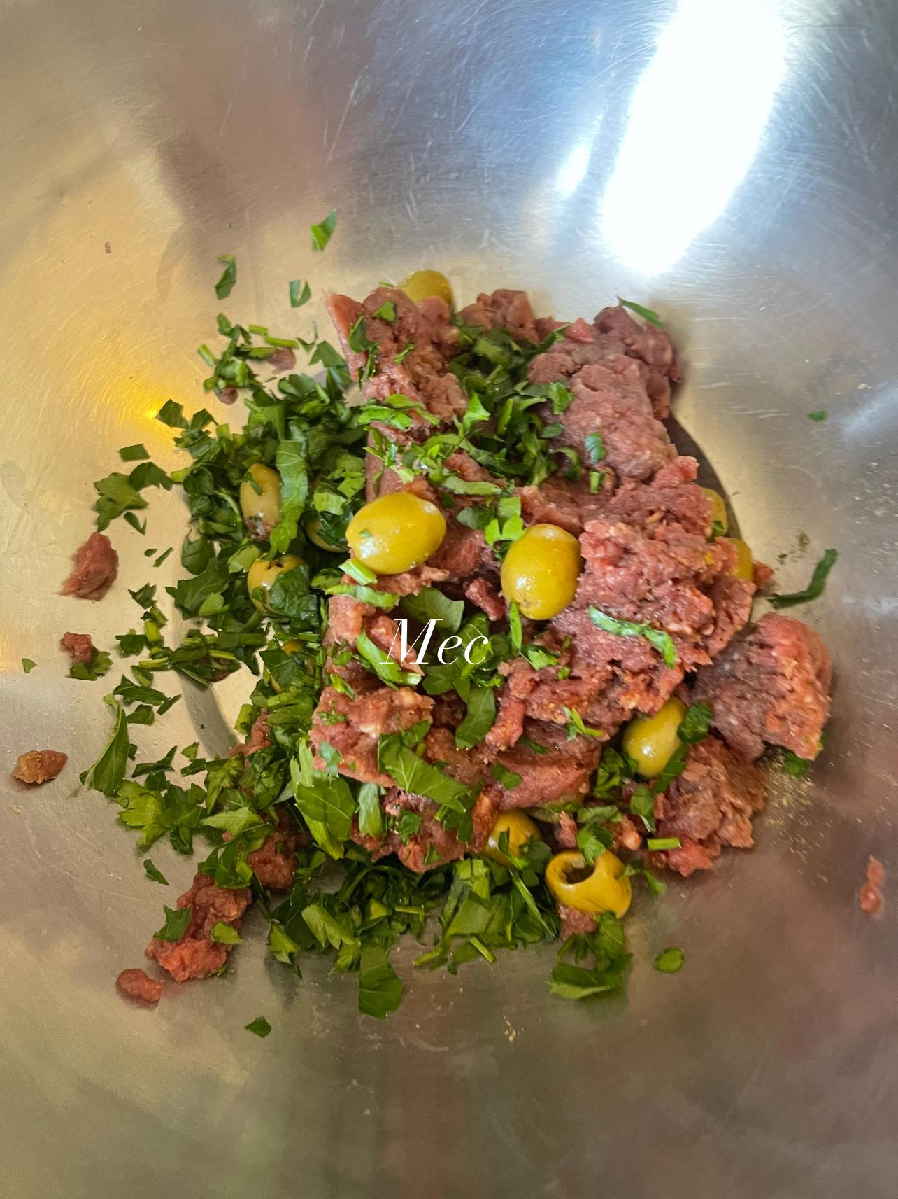 - Dans un saladier, mélangez la viande hachée avec l’ail, le gingembre, le persil, du sel et du poivre.