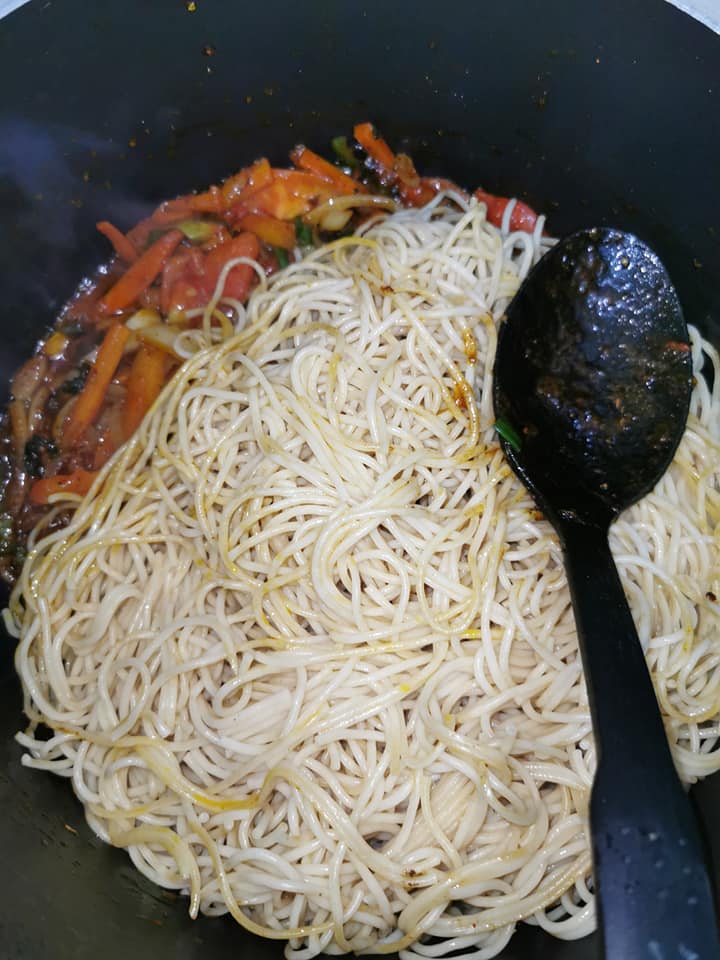 - Ajoutez les spaghetti à la sauce, mélangez délicatement.