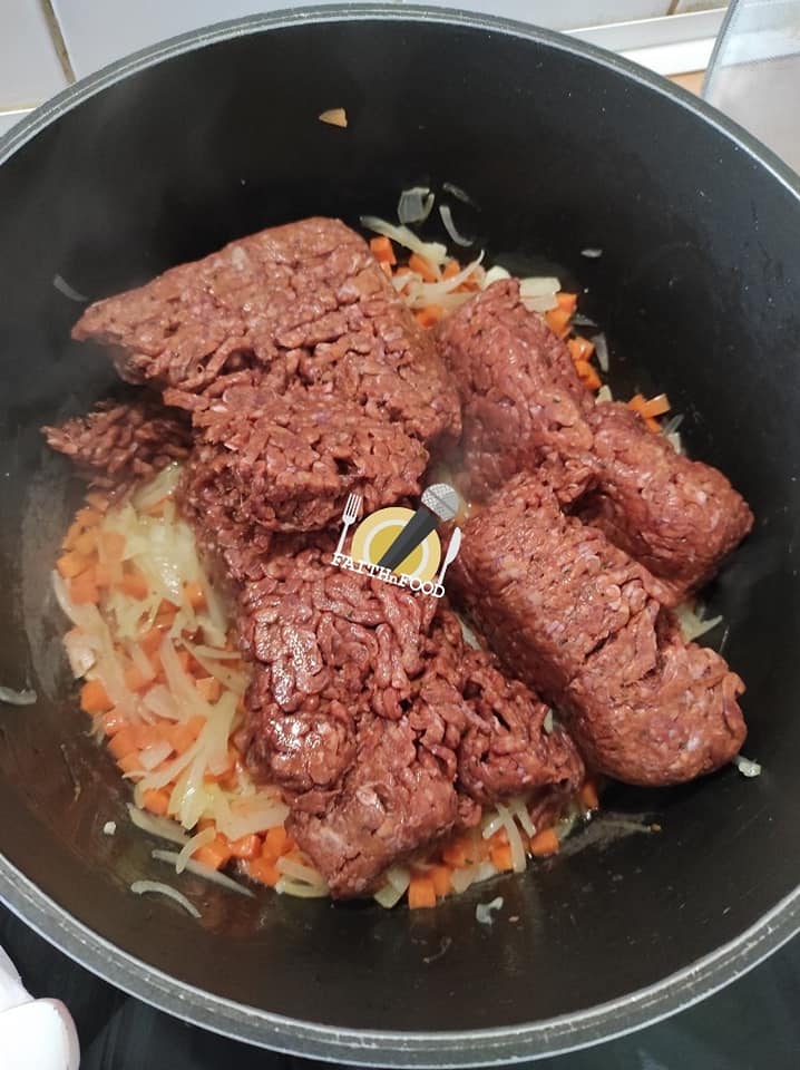 - Incorporer la viande hachée dans la casserole et bien remuer.