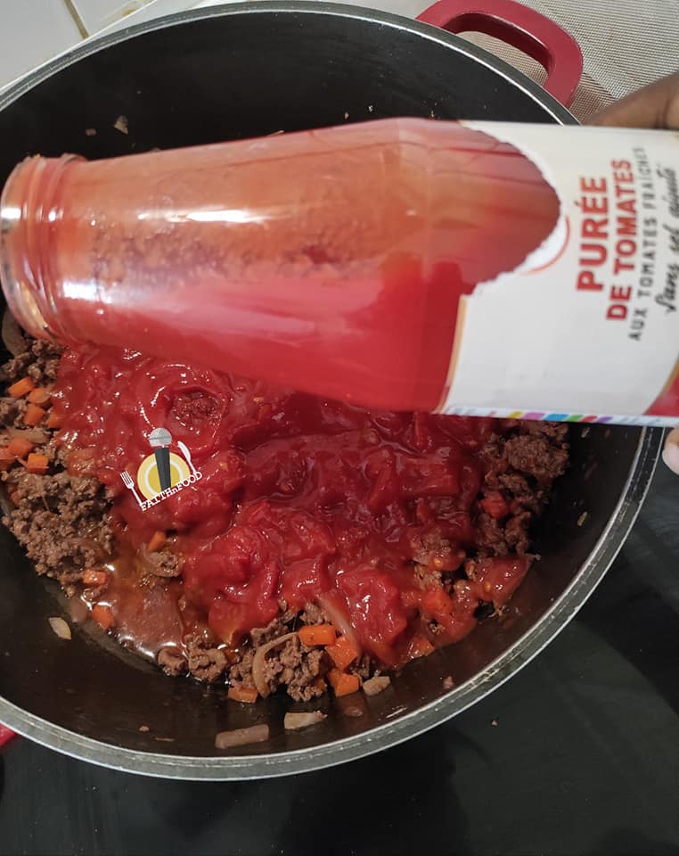 - Verser la purée de tomates et le concentré de tomates selon votre goût.