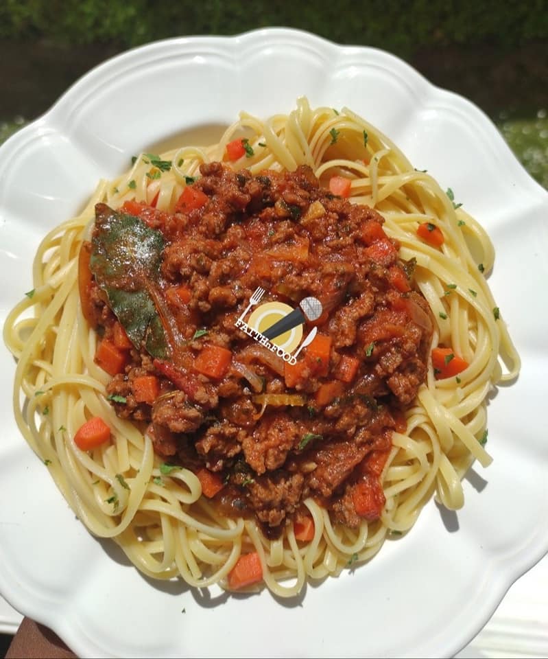- Napper généreusement de sauce bolognaise maison.