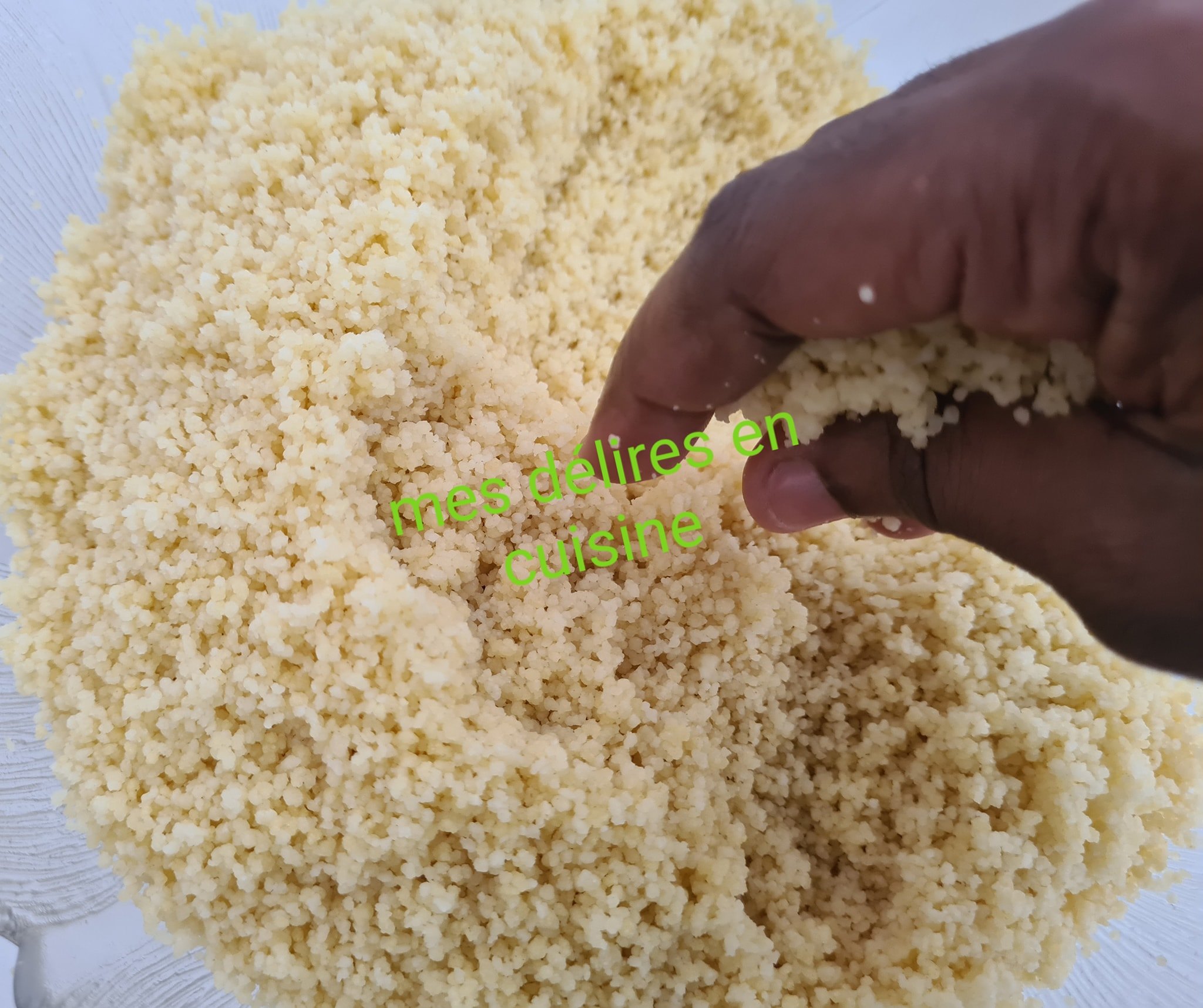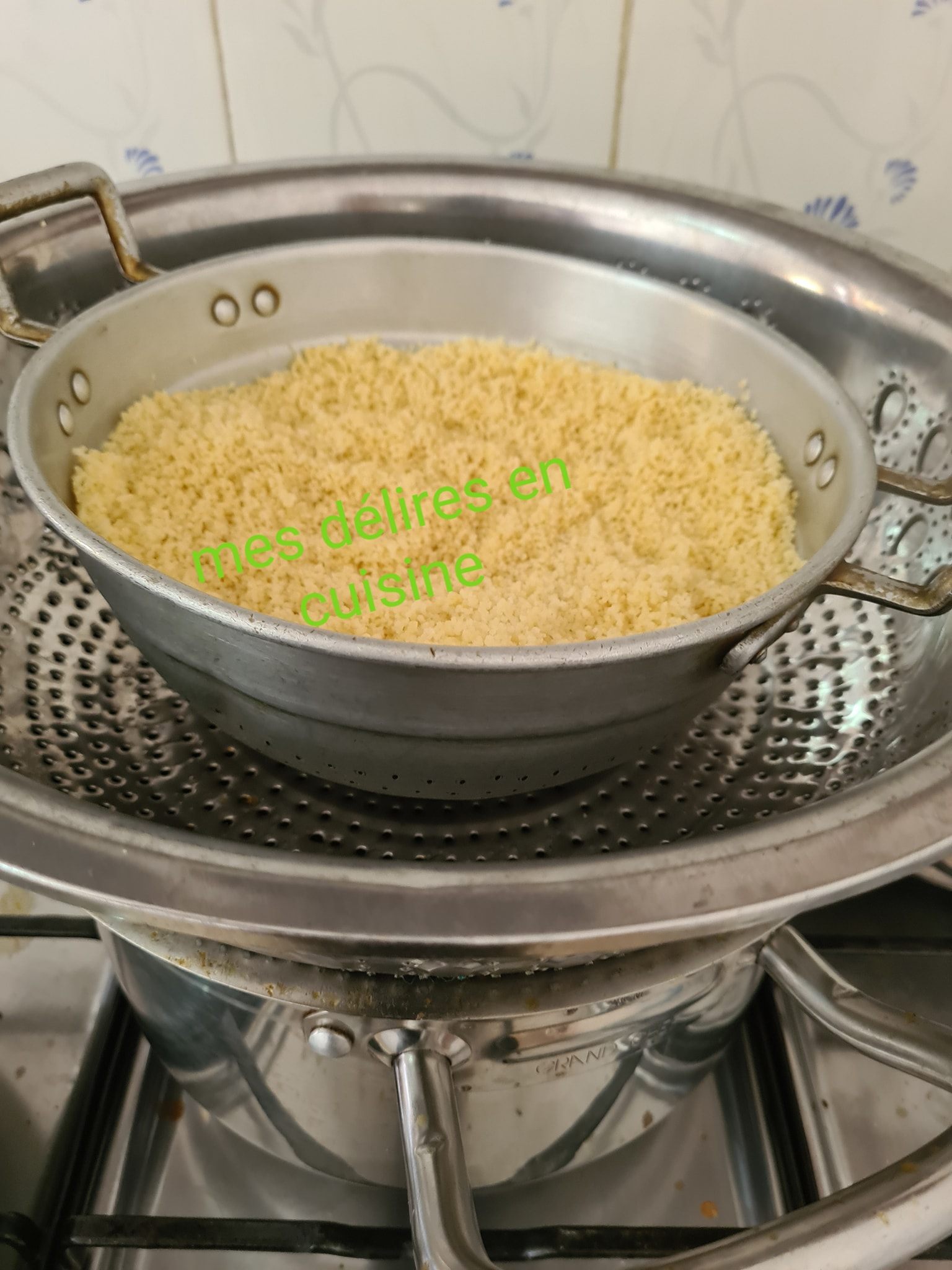 - Faites cuire la semoule à la vapeur en la posant au-dessus de la sauce dans une passoire couverte pendant 10 minutes.