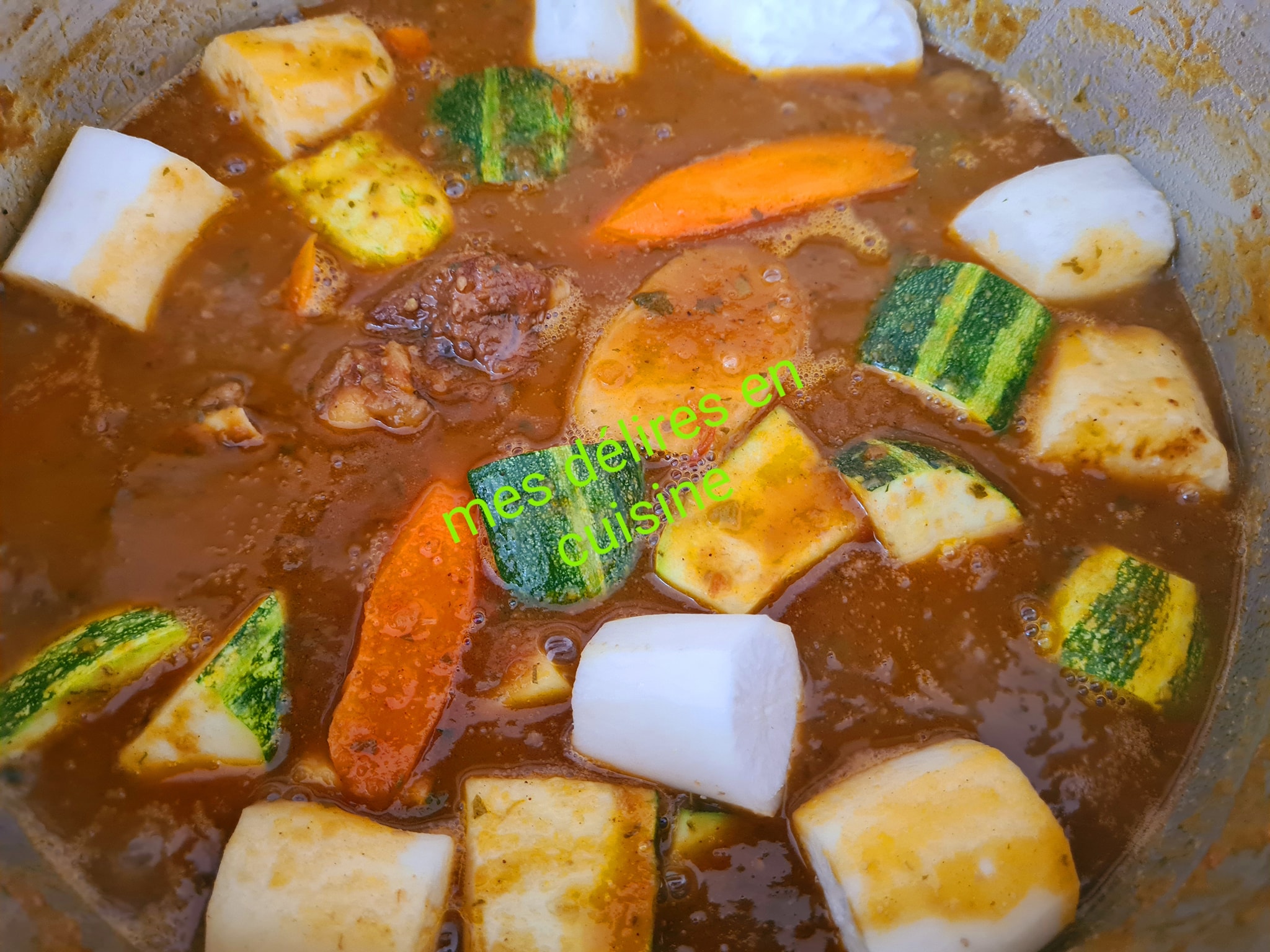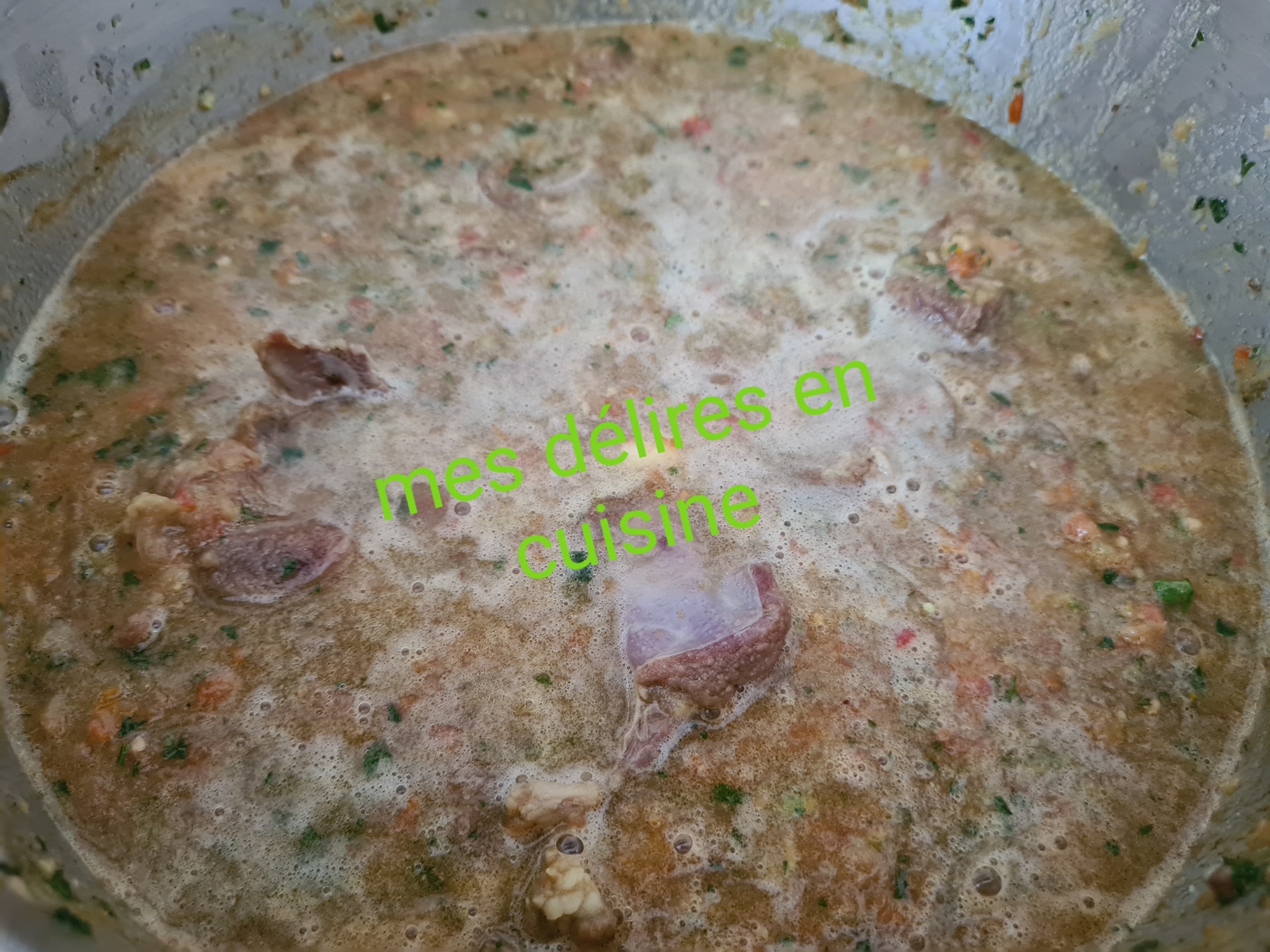 - Couvrez et laissez cuire à feu moyen pendant 1 heure (ajustez selon la tendreté de la viande).
