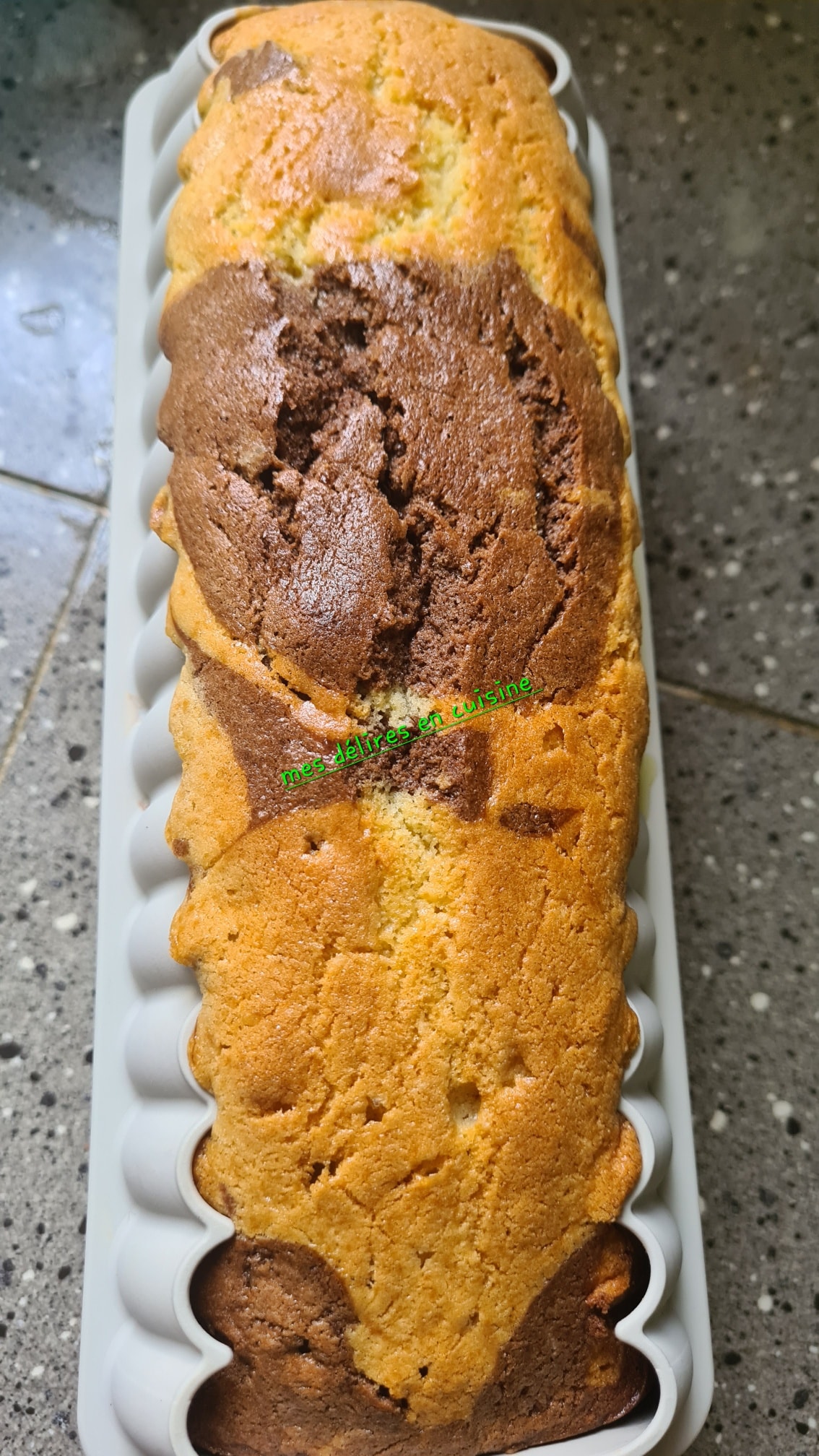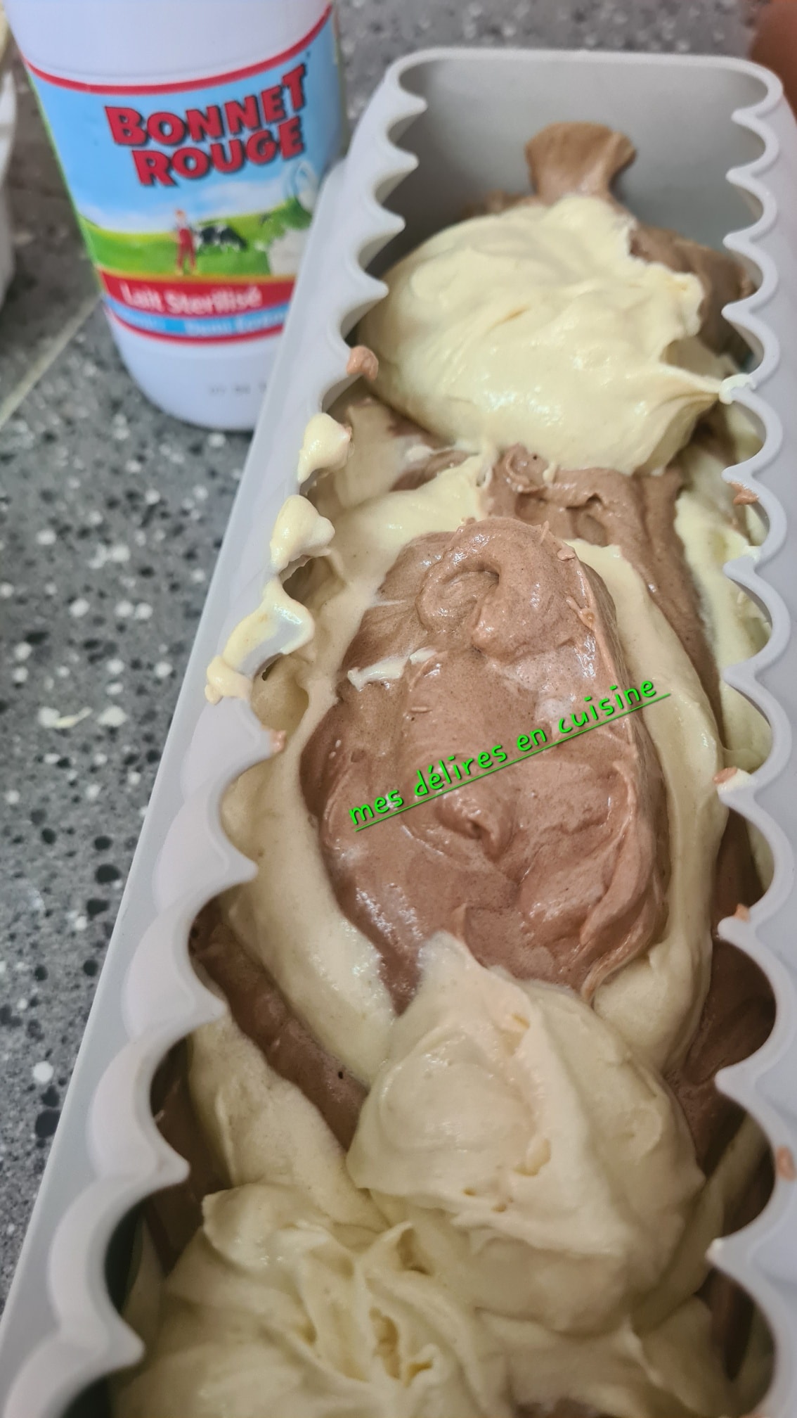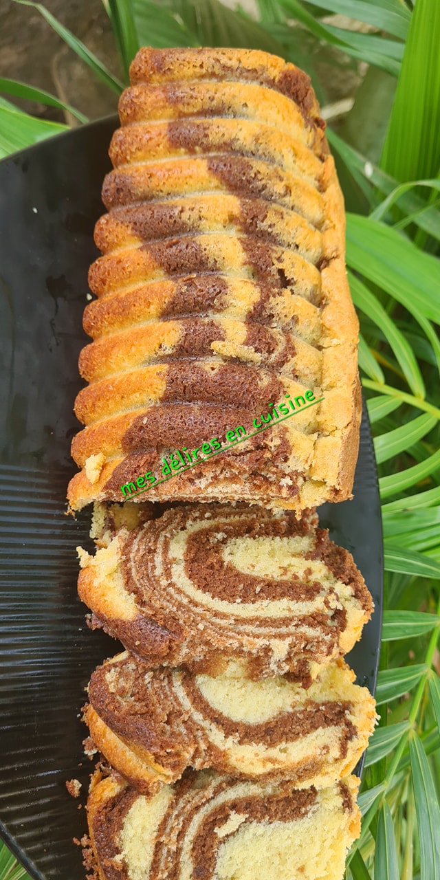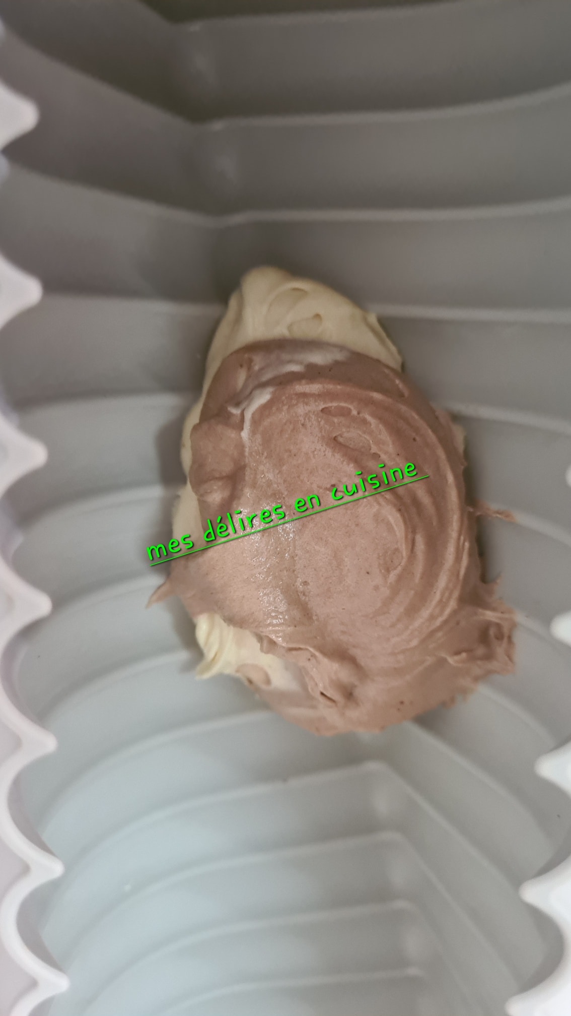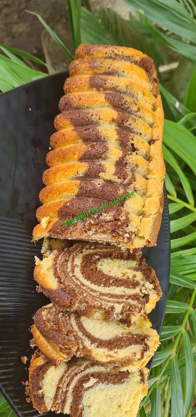 - Dans un moule beurré, alternez une cuillère de pâte à la vanille puis une cuillère de pâte au cacao, et ainsi de suite pour créer l’effet marbré.