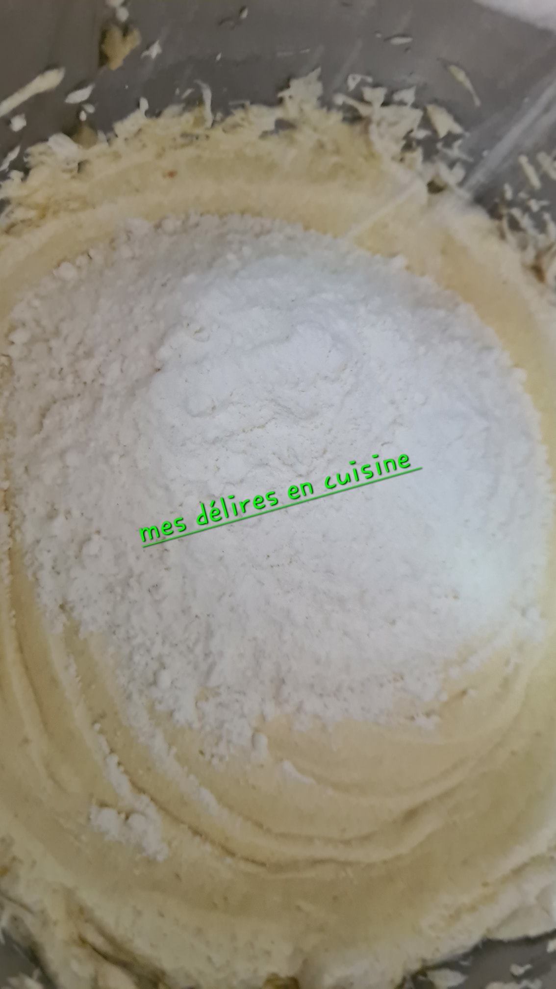 - Dans le premier bol : ajoutez 175 g de farine, la vanille et la moitié de la levure chimique.