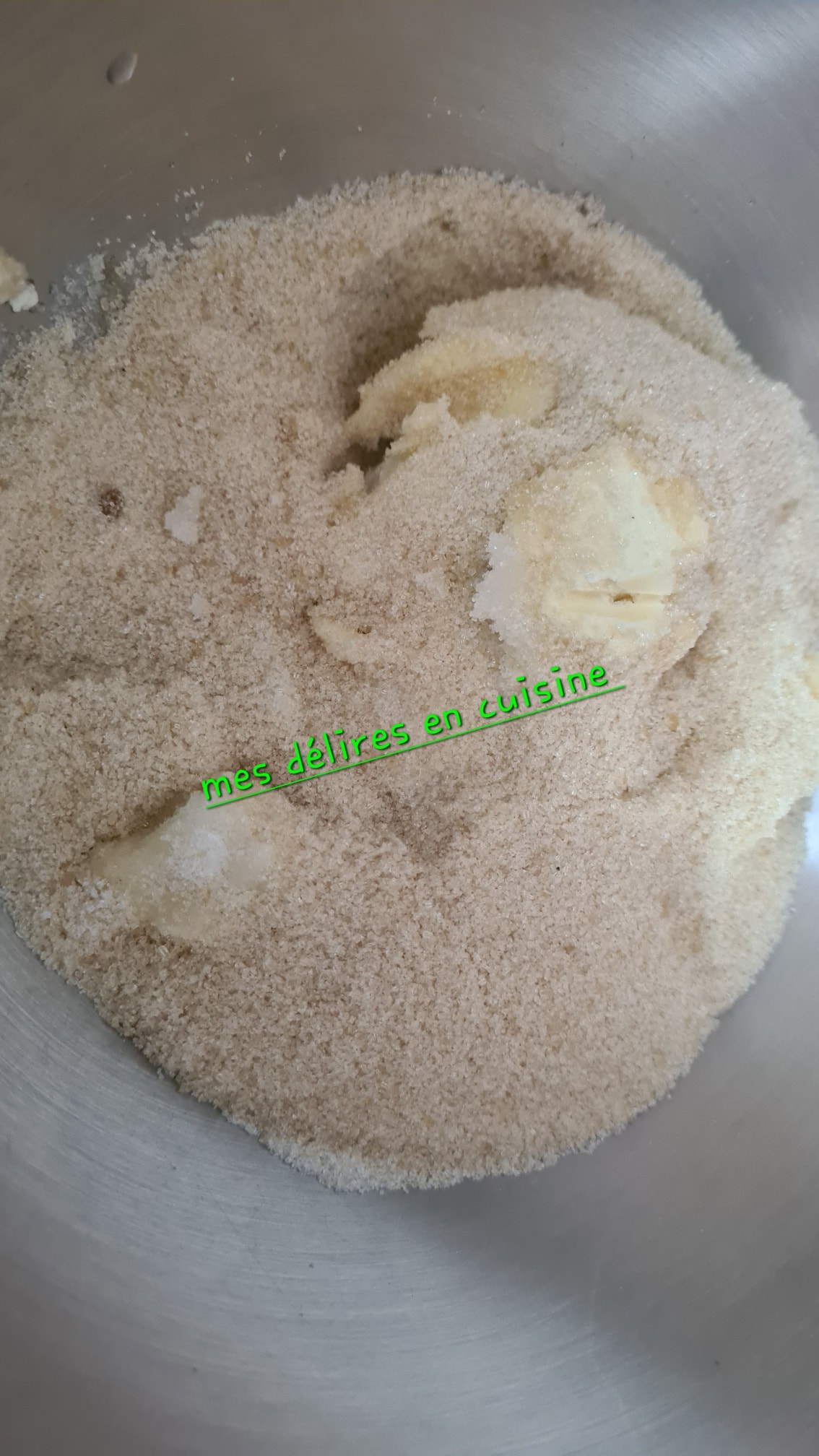- Dans un grand bol, mélangez le sucre vanillé avec le beurre ramolli jusqu’à obtenir une texture crémeuse.