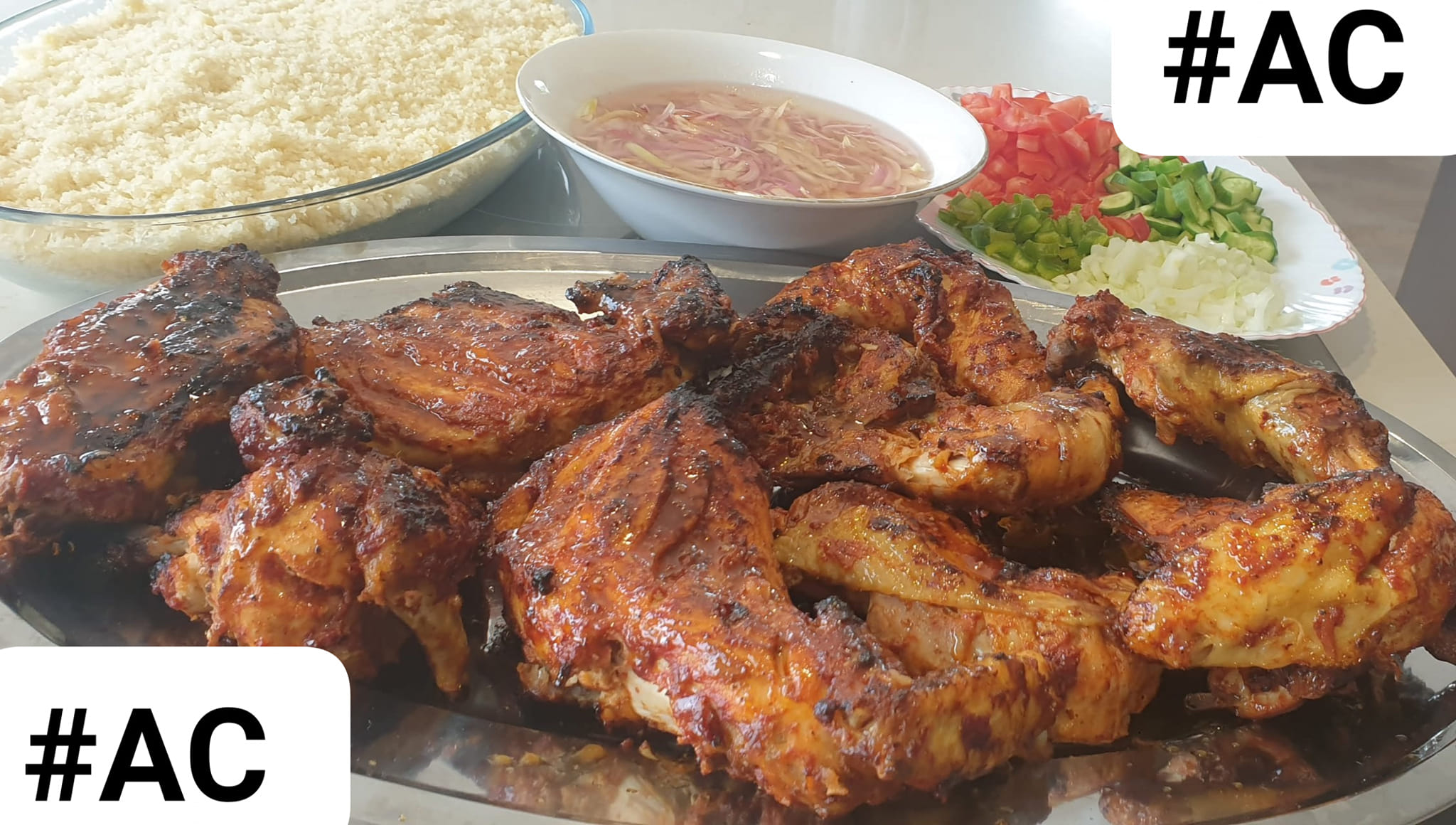 Servez ce délicieux poulet braisé accompagné d’attiéké, de riz ou de bananes plantains frites pour un repas complet et savoureux.