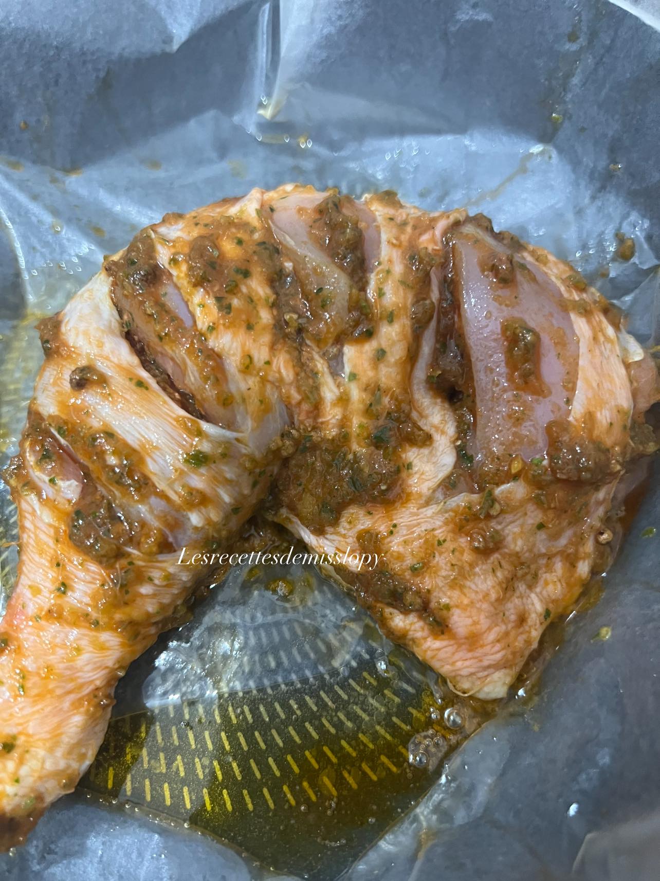 - Badigeonnez généreusement la viande avec la marinade préparée, en veillant à bien la répartir dans les entailles.