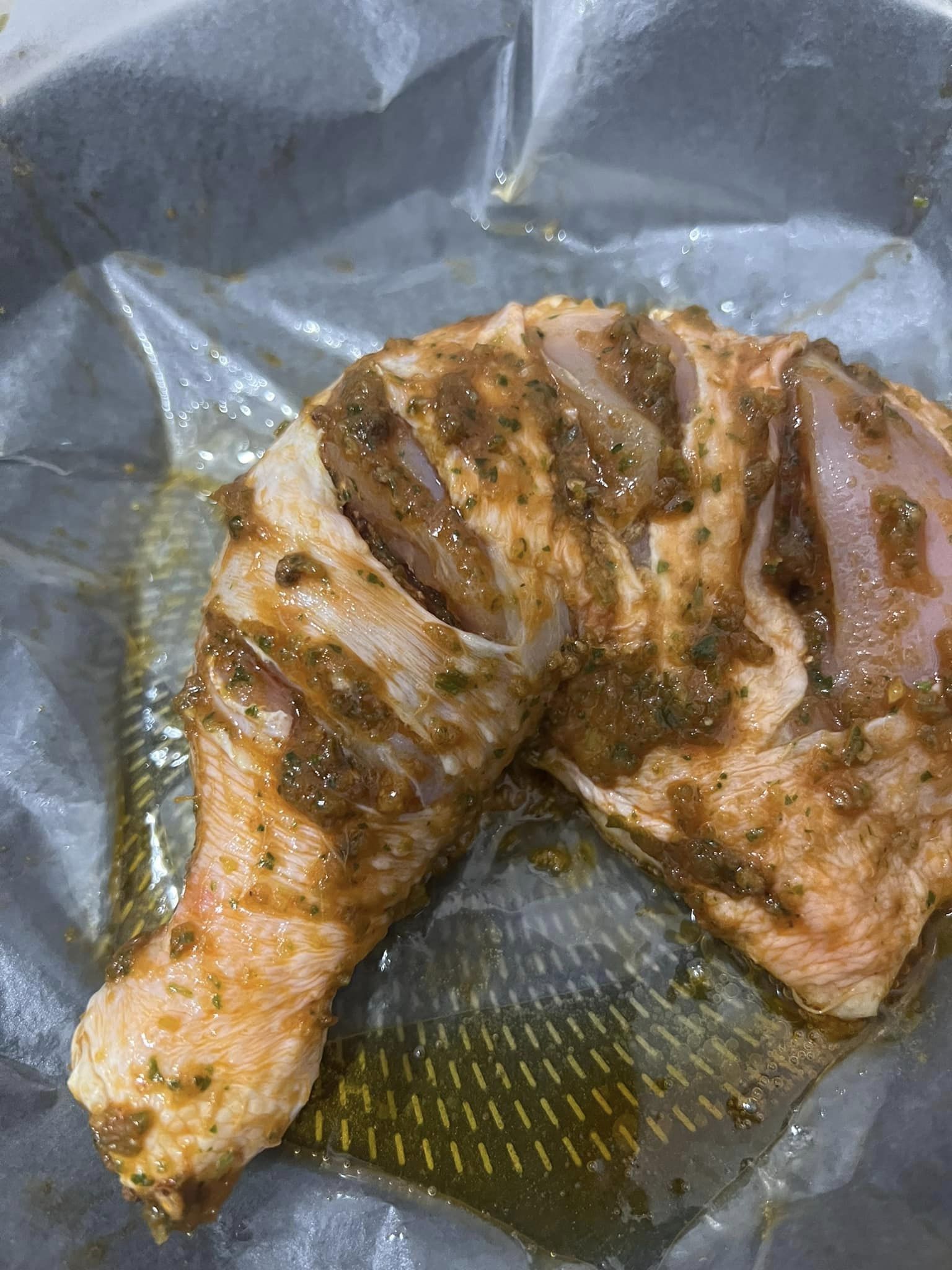 - Faites des entailles dans les morceaux de viande (par exemple, des cuisses de poulet) pour permettre à la marinade de bien pénétrer.