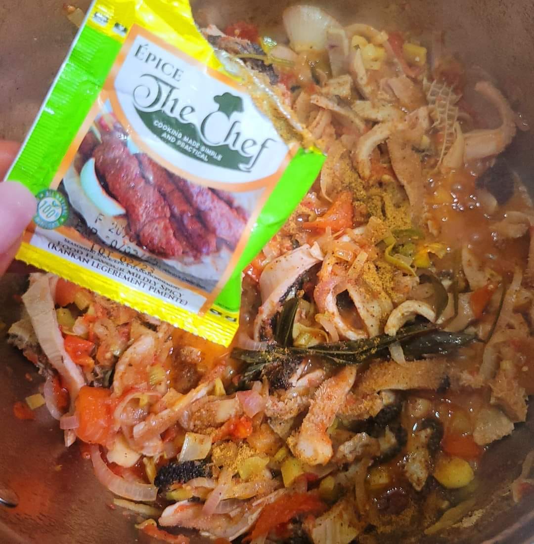 - 5 minutes plus tard, ajoutez 1 c. à soupe (ou sachet) d’épice The Chef saveur kankan.