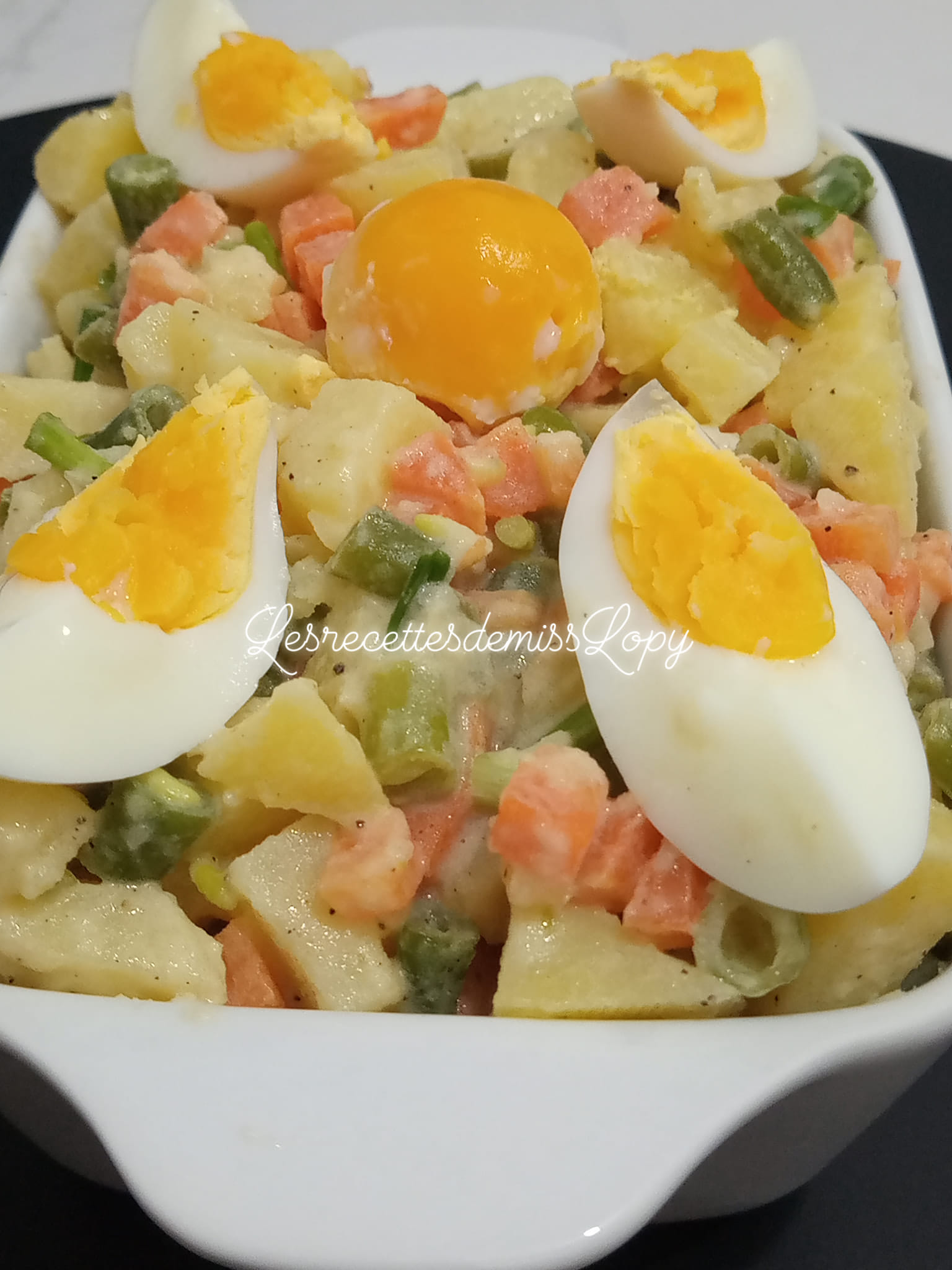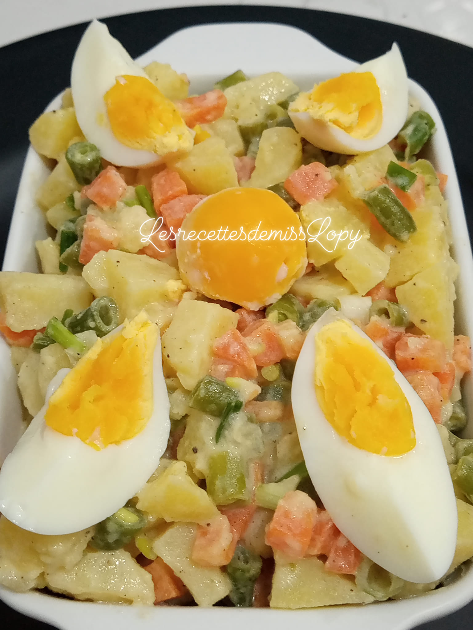 - Servir et terminer par les œufs pendants au dessus.