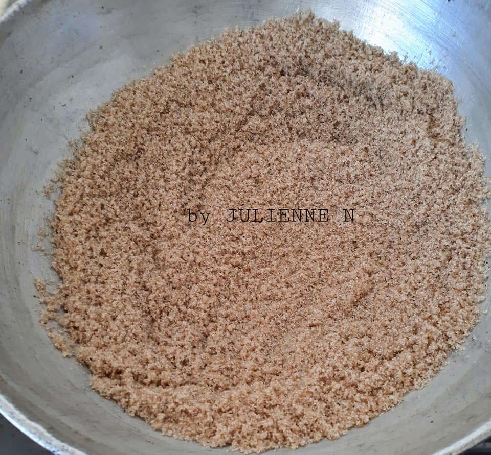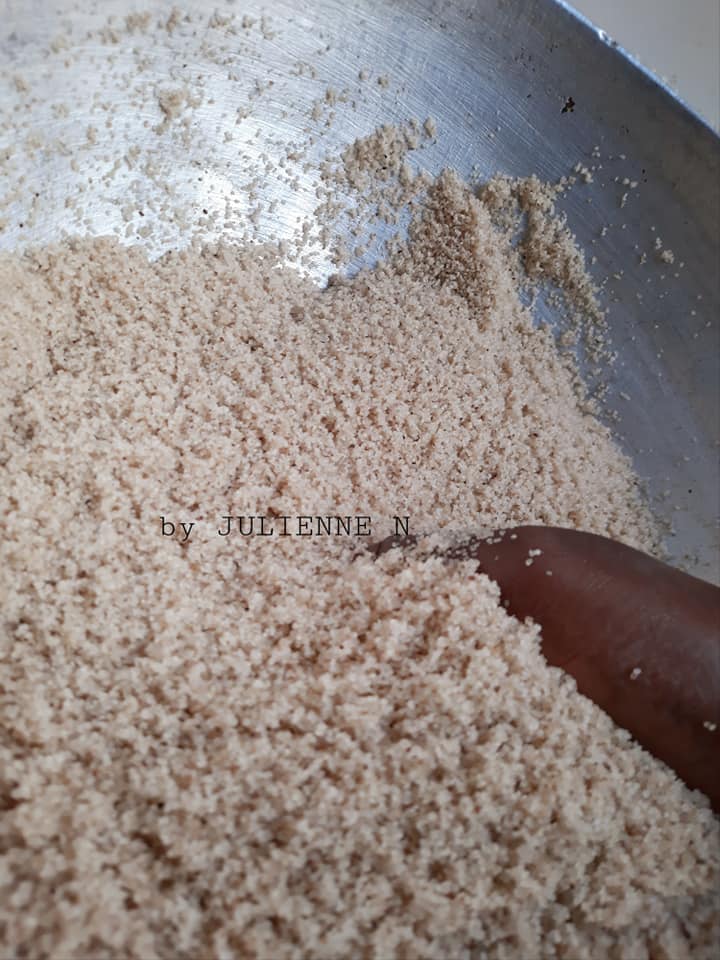 - Vider le fonio dans le bol pour la troisième fois, égrener avec la louche et la fourchette, puis ajouter 300 ml d’eau, égrener jusqu’à absorption totale du liquide. Ensuite, ajouter dans le couscous, la muscade et le poivre noir, puis mélanger. Remettre le couscous de fonio à cuire 20 minutes et c’est prêt. Servir à sa convenance avec une sauce pâte d’arachides ou autre.