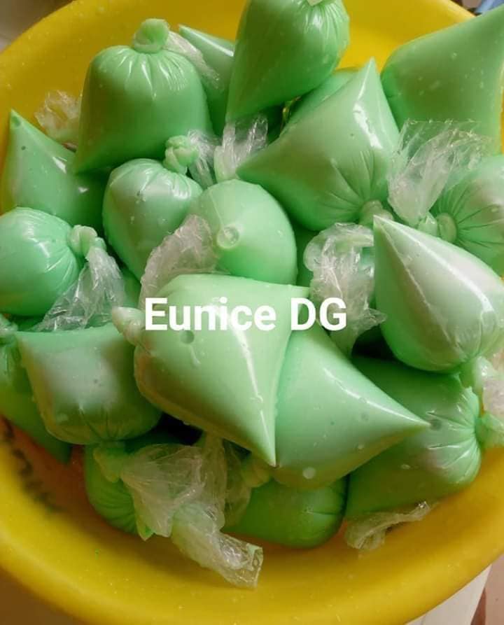 - Bien mélanger, mettre le sachet de menthe, mélanger à nouveau, mettre le lait en poudre, sucre glace, sucre vanillé, goûtez pour voir, si le sucre n’est pas à votre convenance, ajoutez.