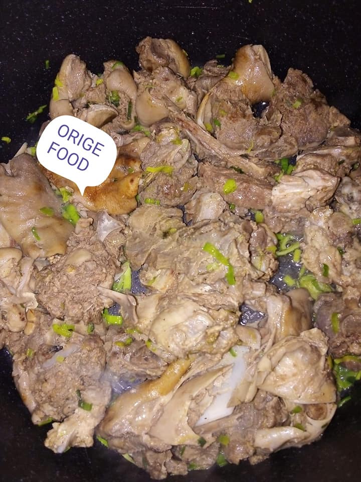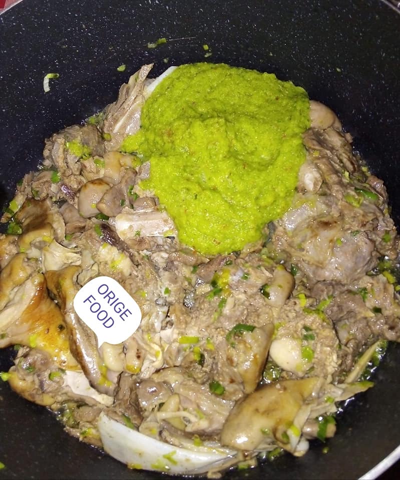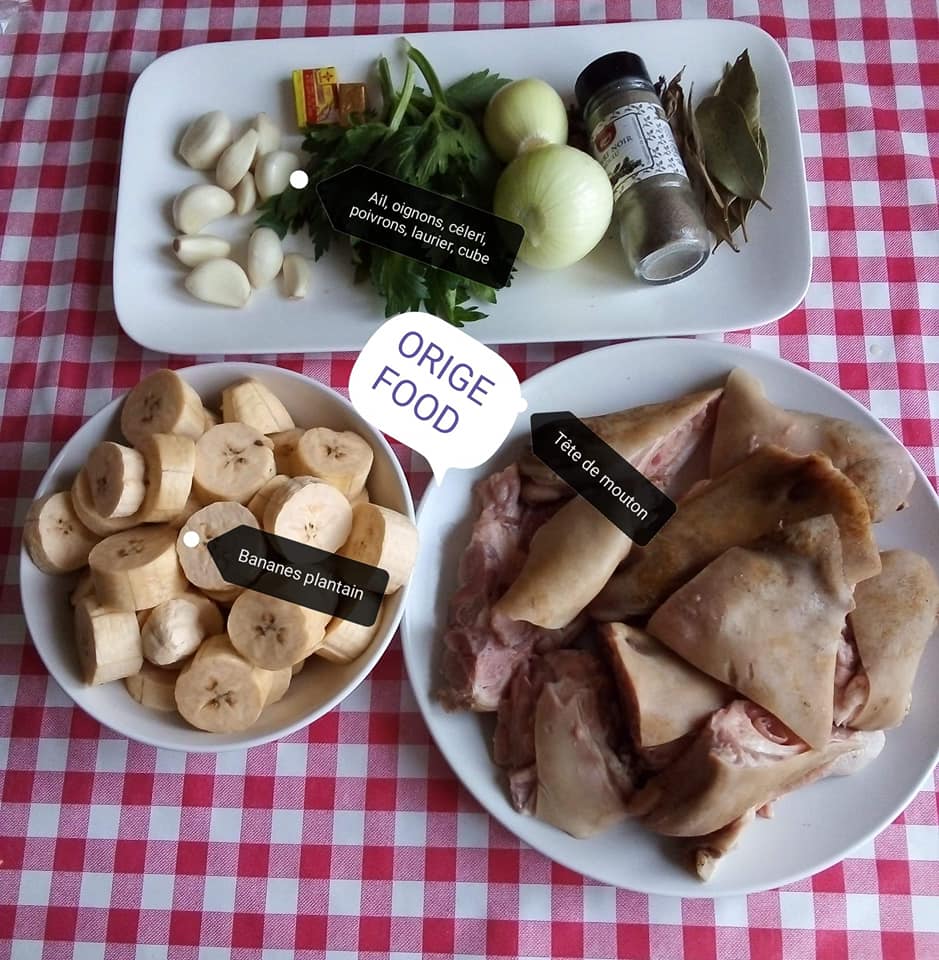 - Faire bouillir la viande de mouton, faire frire les banane plantain, écrasé les condiments une fois la viande bouillir