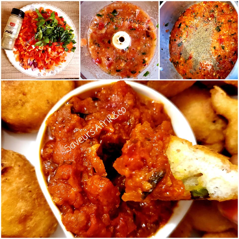 - Mixer les tomates, l’oignon, l’ail, le poivron, la ciboulette, le persil, du piment rouge.
