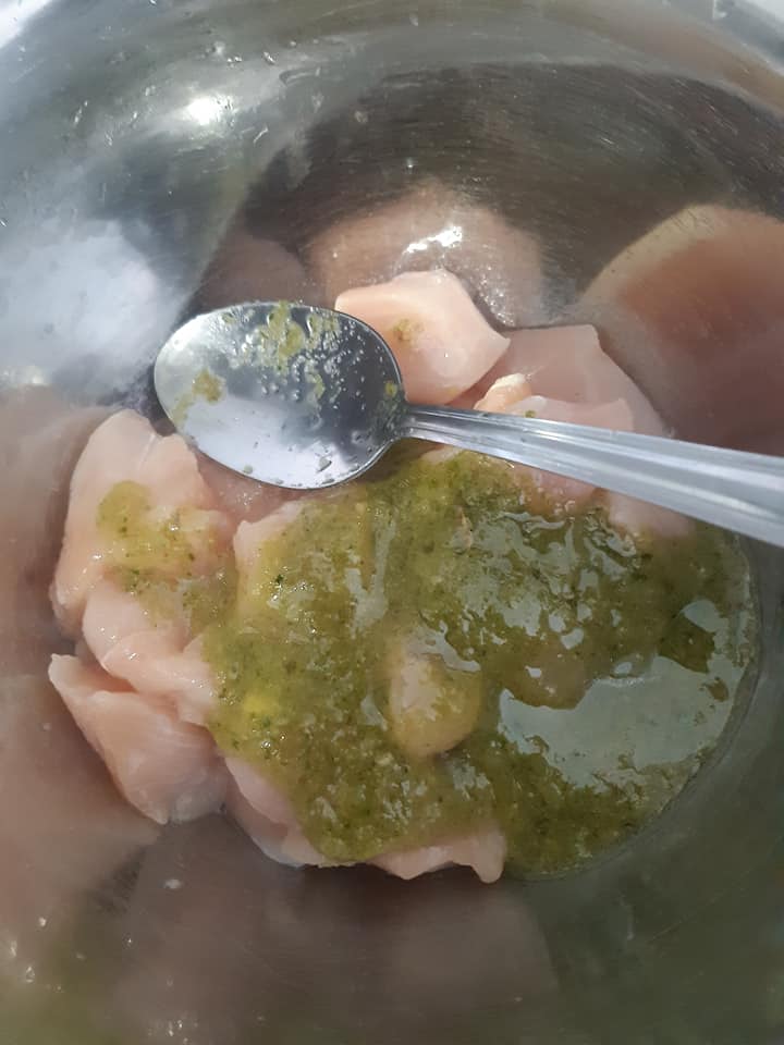 - Verser les condiments sur le poulet et laisser mariner 2h au moins