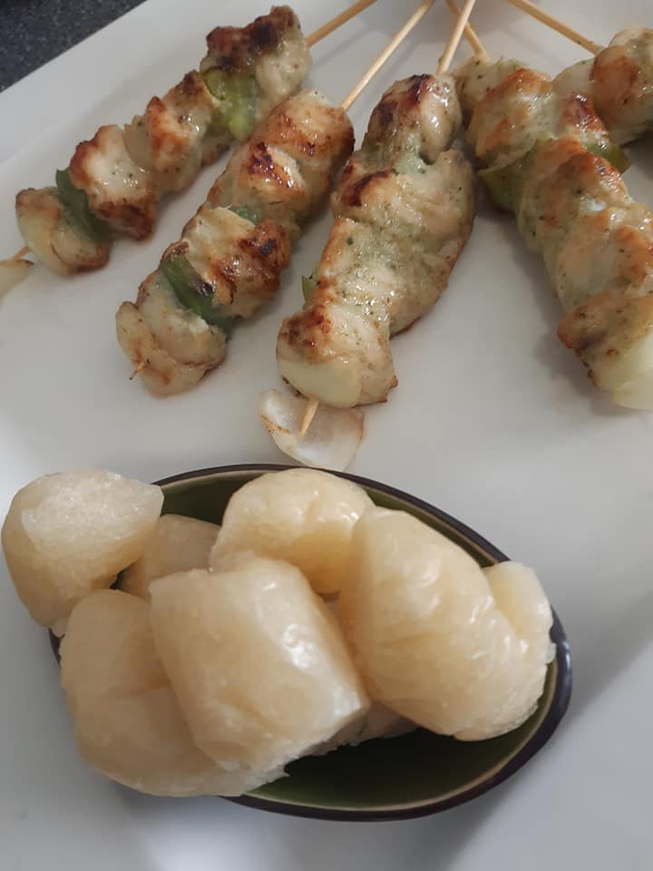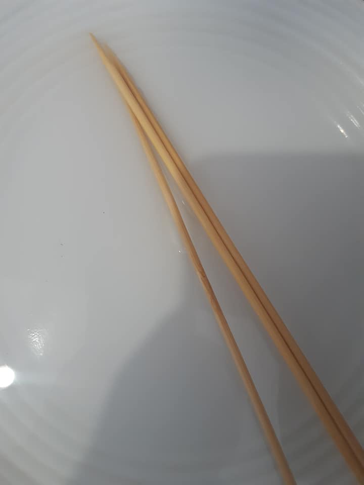 - Pendant ce temps tremper les broches dans de l eau ( ceci permet à ce qu’elles ne noircissent pas lors de la cuisson)