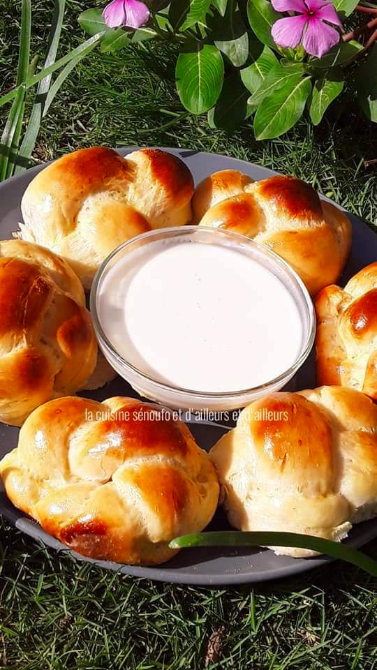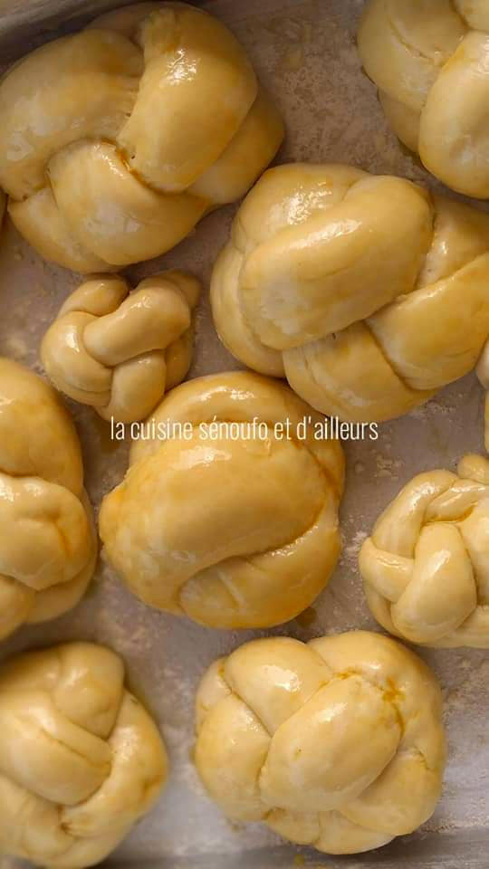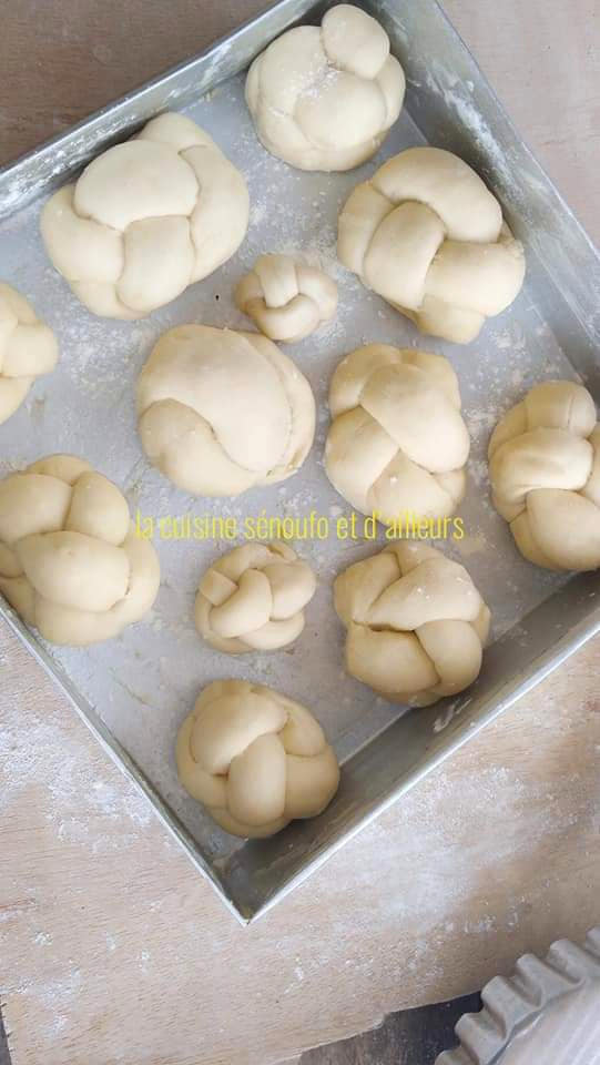 - Faire des boules et les mettre dans un moule beurrer. Couvrir 30minutes. Badigeonner avec le jaune d’œuf.
