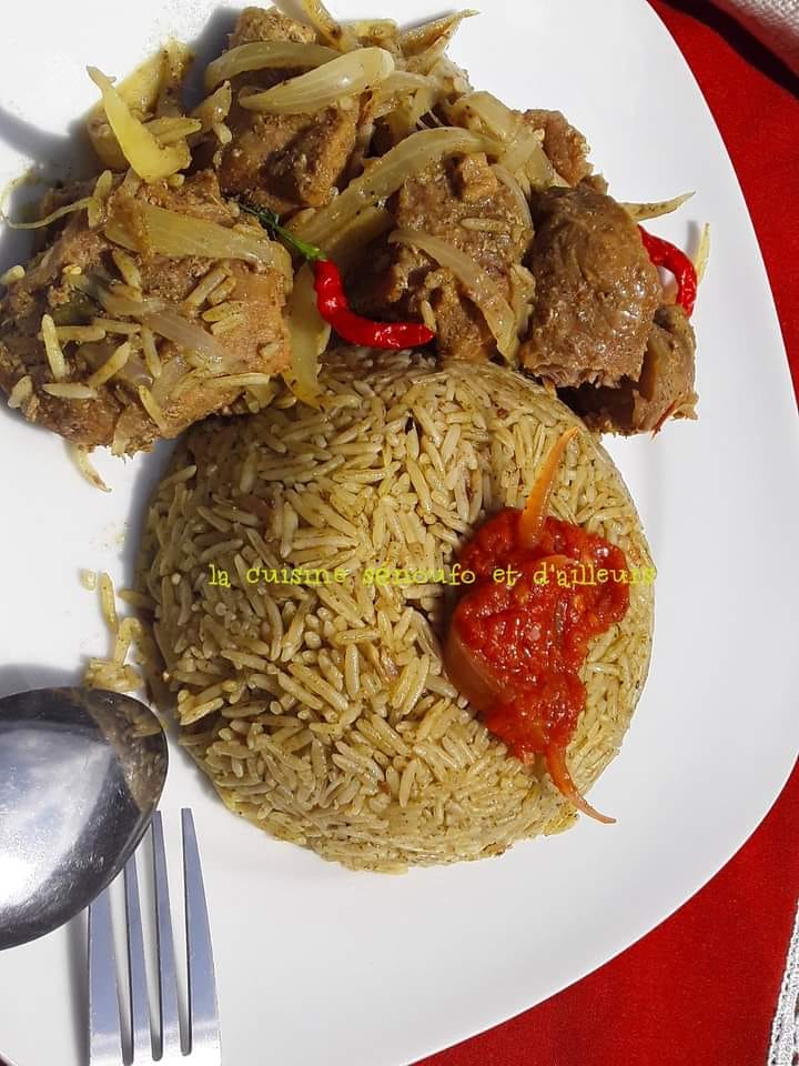 - Mariner la viande avec une petite quantité de cette mixture +du poivre+du sel. La précuire. Précuire le riz à la vapeur.