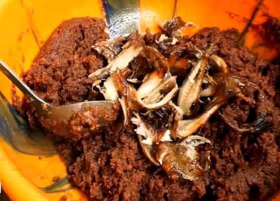 - Triez et trempez les madjanga (écrevisses)