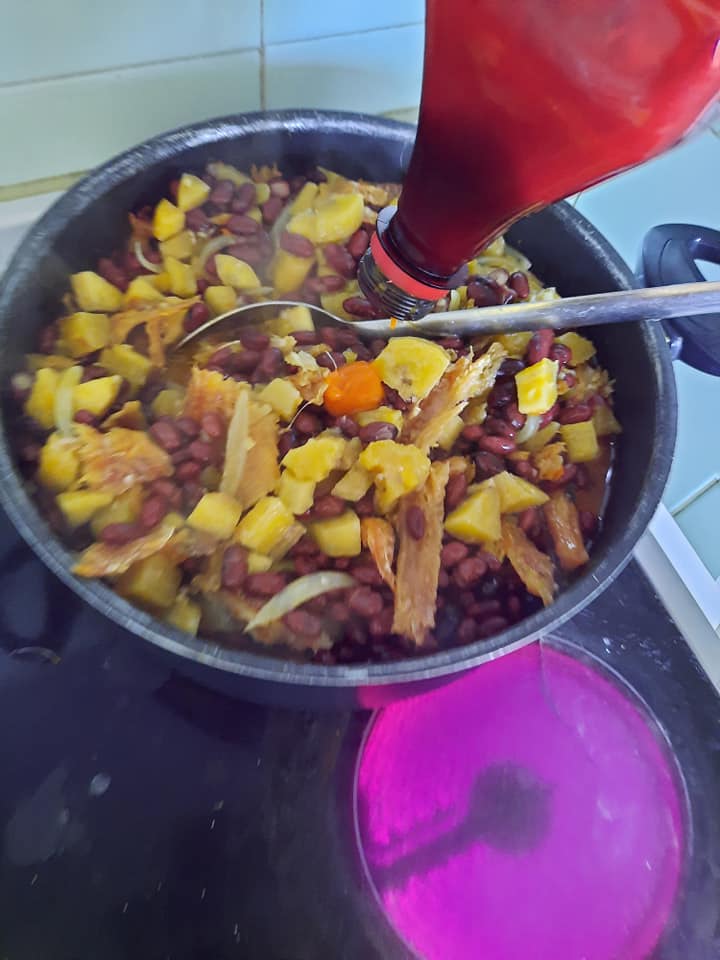 - A mi cuisson ajouter le haricot et bien tourner pour mélanger ensuite vous pouvez rajouter un peu d’huile de palme a votre convenance (cet ajout est facultatif).