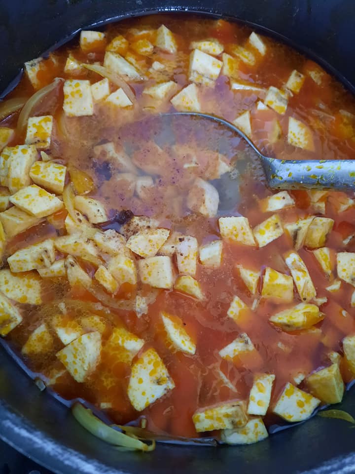 - Ensuite ajouter l’eau au même niveau que le plantain ou légèrement au déçu du plantain puis ajouter le sel et le cube d’assaisonnement (facultatif).
