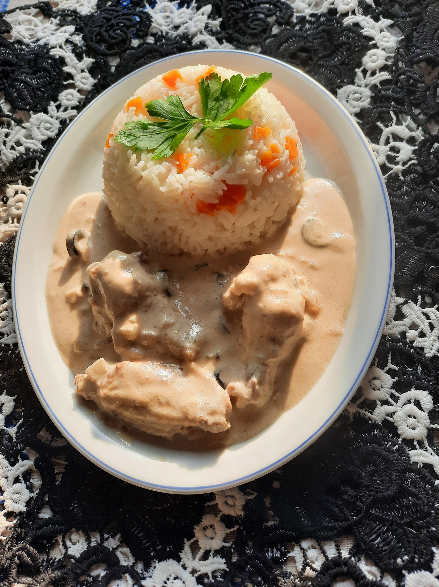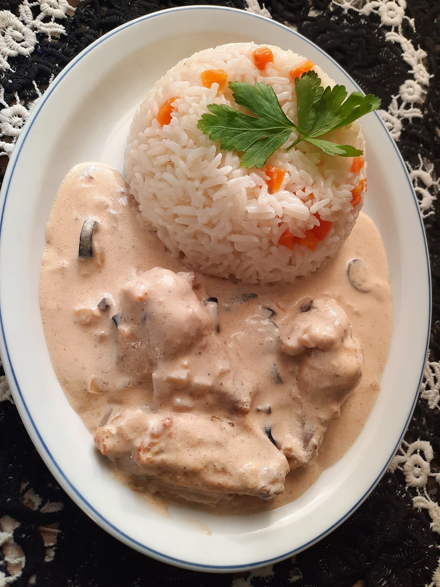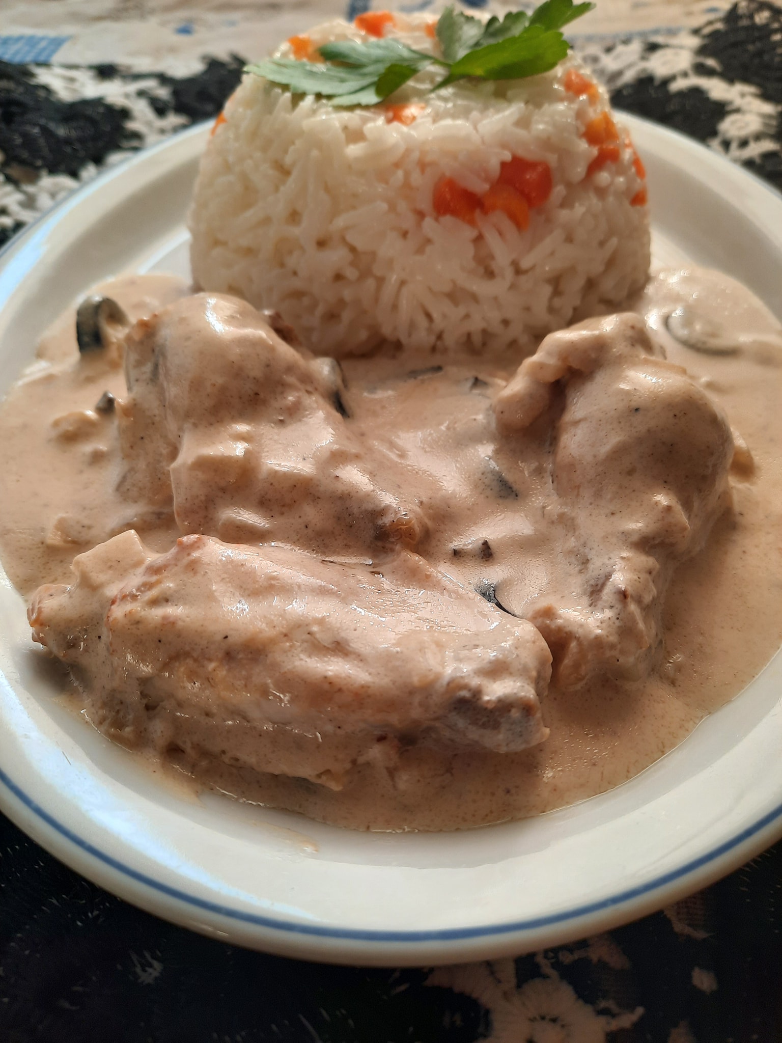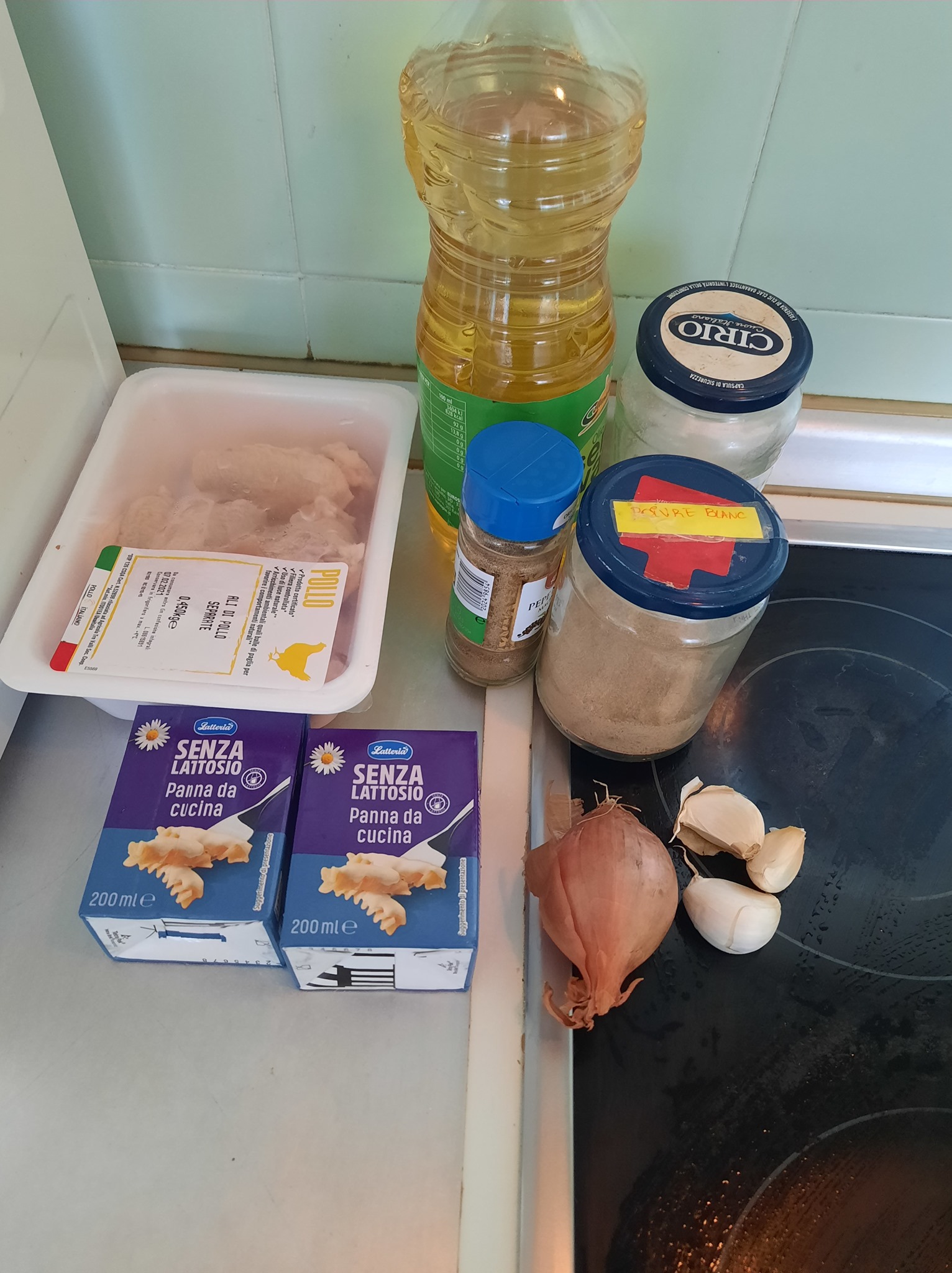 Pour un repas de 4 personnes j’ai utilisé 400g de crème fraîche et 450g de d’ailes de poulet