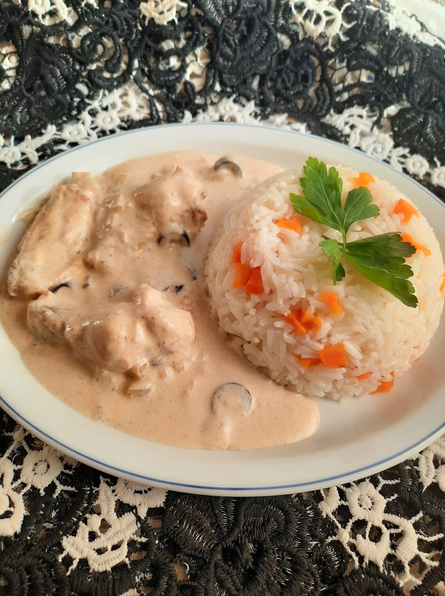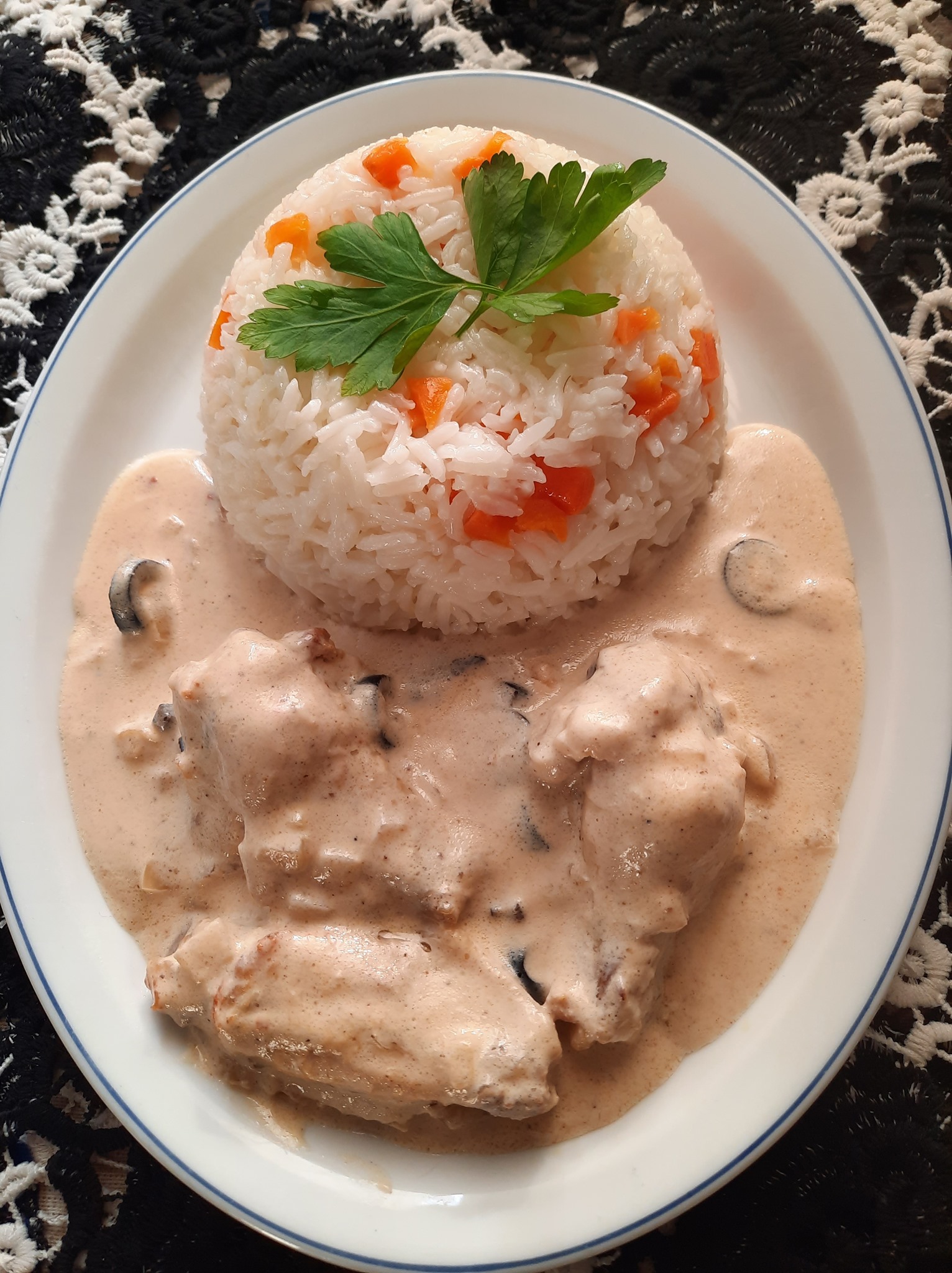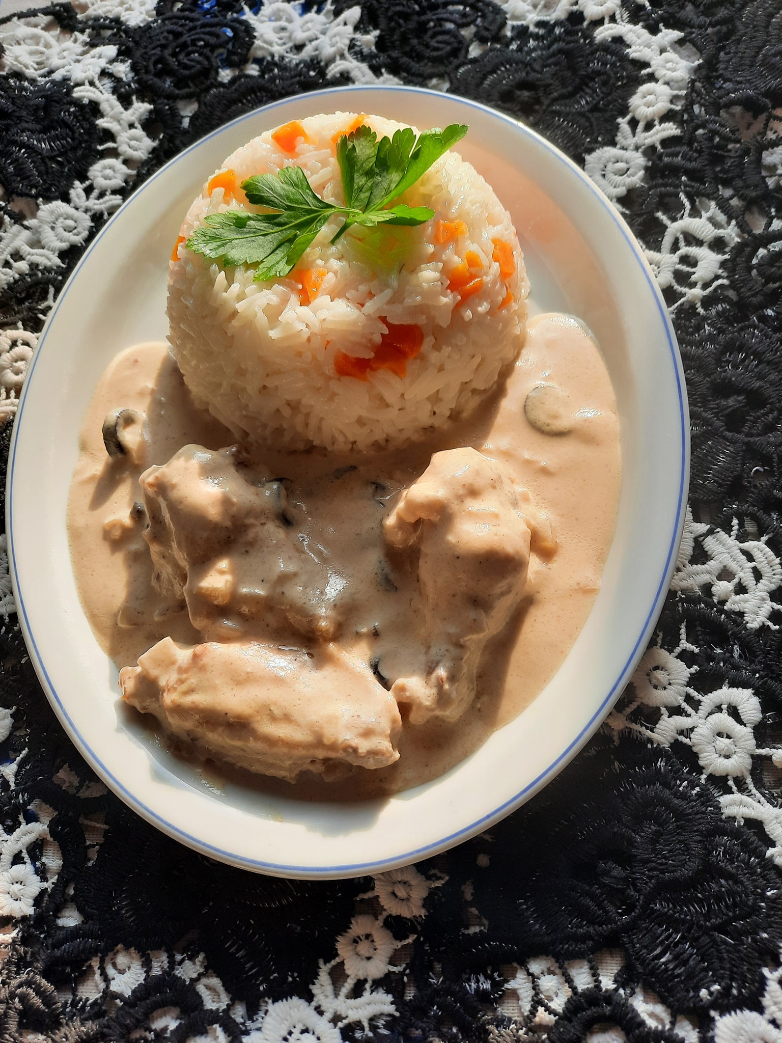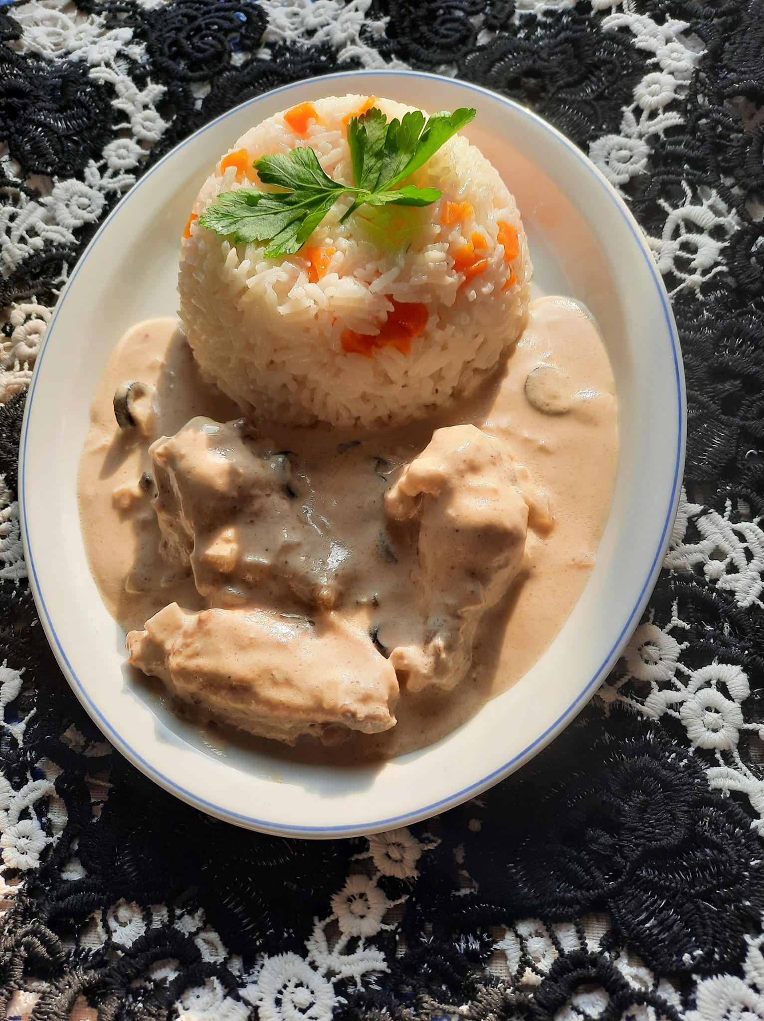 Pour un repas de 4 personnes j’ai utilisé 400g de crème fraîche et 450g de d’ailes de poulet