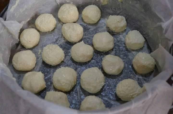 - Formez des boules de la taille d’une noix, et laissez de côté.