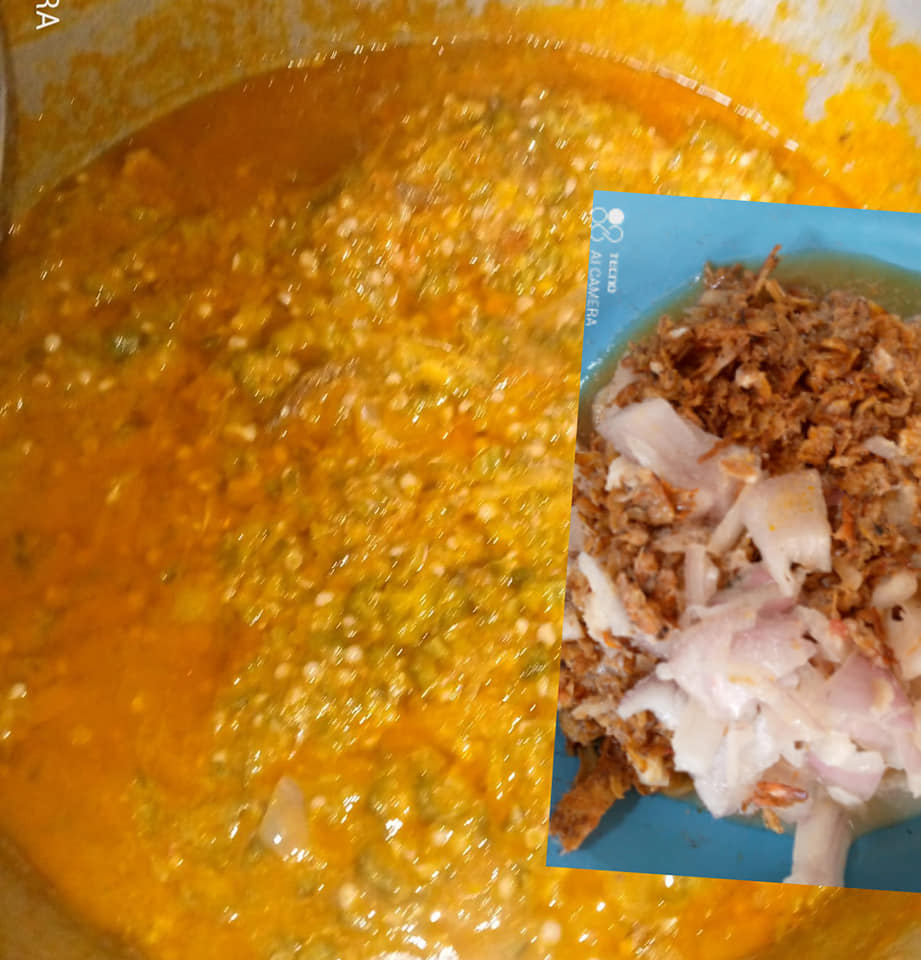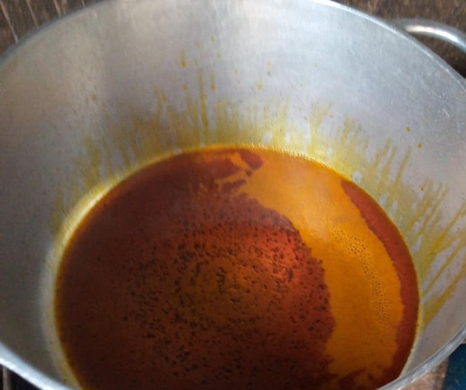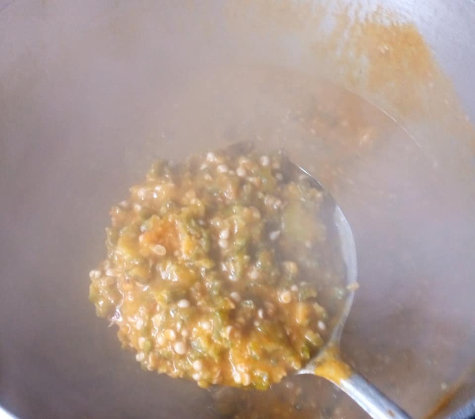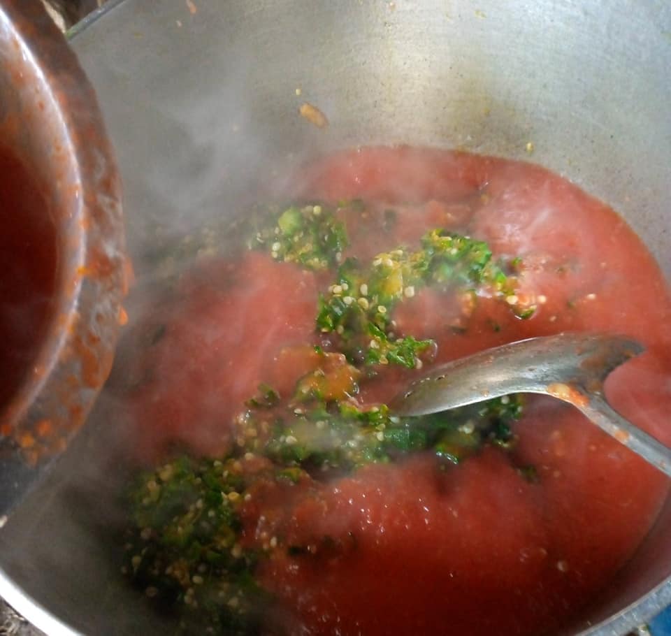 20minutes après la tomate ajouter les ingrédients qu’on a écrasés avec une feuille d’odjom (facultatif)