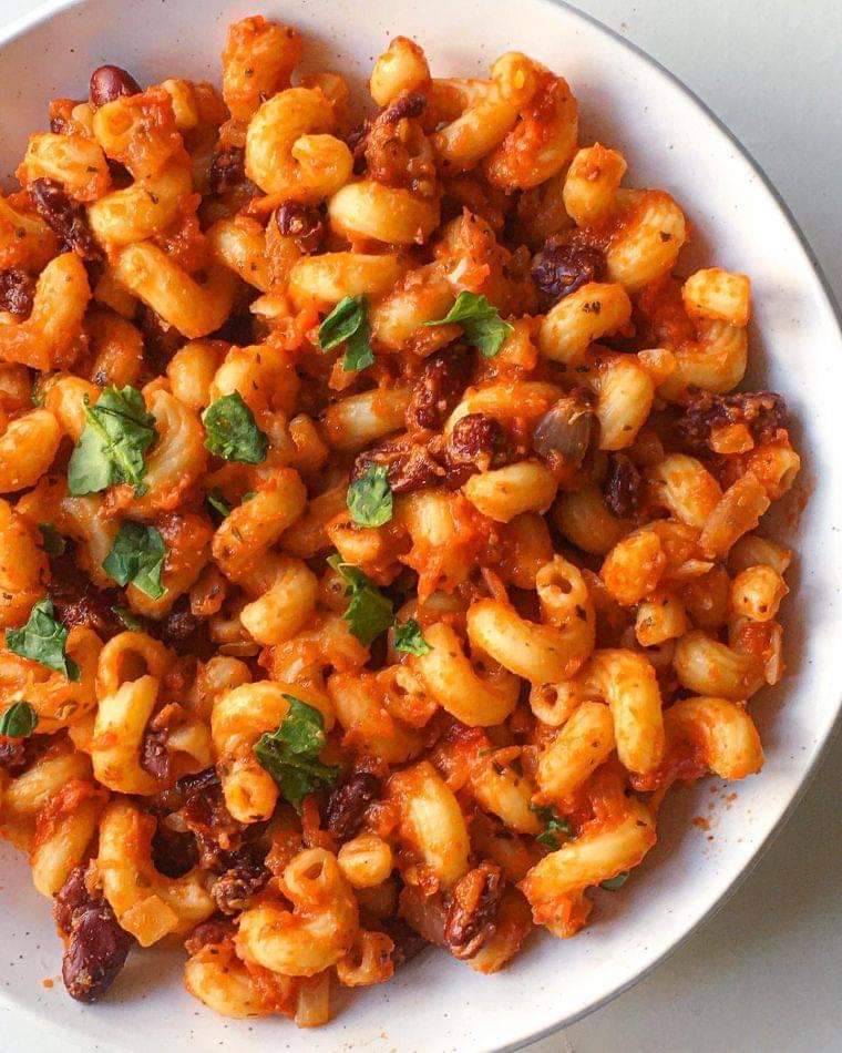 - Puis verser les haricots rouges et laisser mijoter à feu très doux au moins 10 min Ensuite verser les macaronis bien remuer et laisser mijoter encore 5 min.