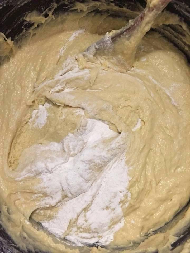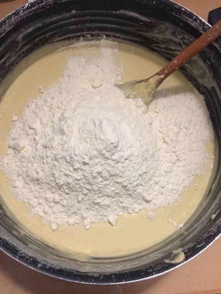 - Ajouter le zeste et une partie de la farine bien mélanger.