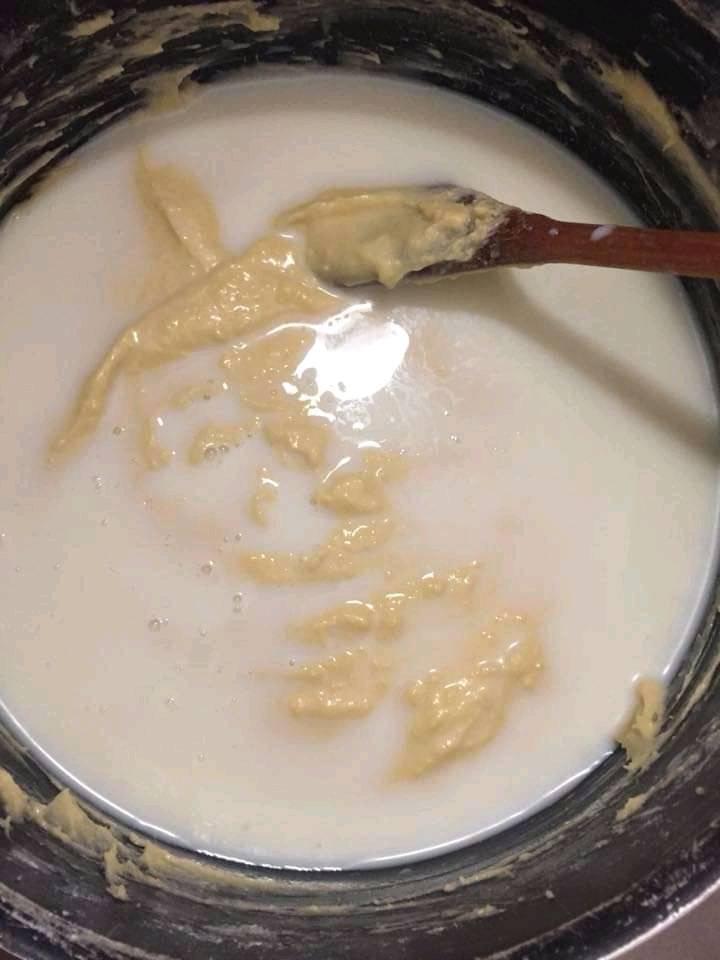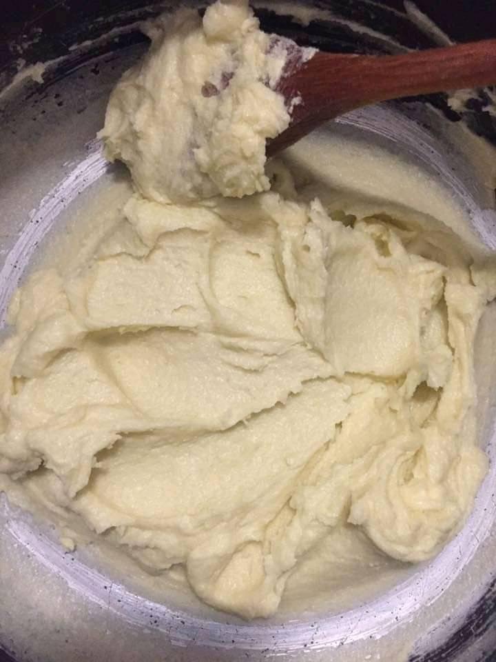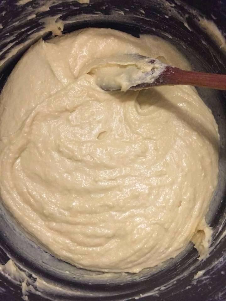 - Mélanger jusqu’à obtenir une pâte bien homogène ni trop légère ni trop épaisse.