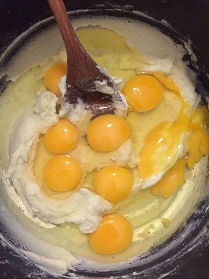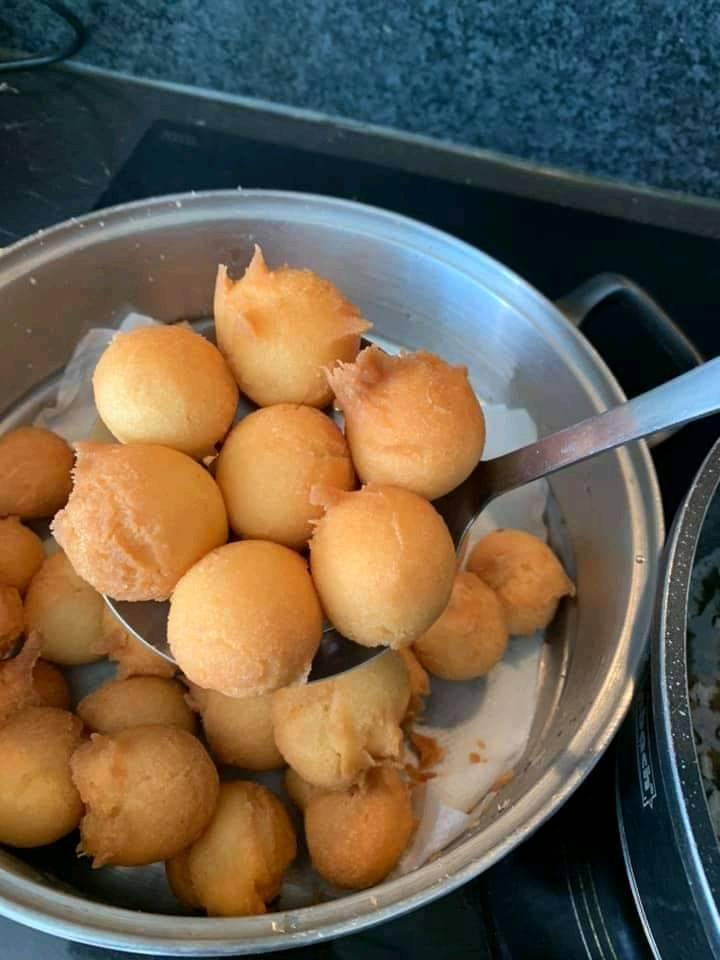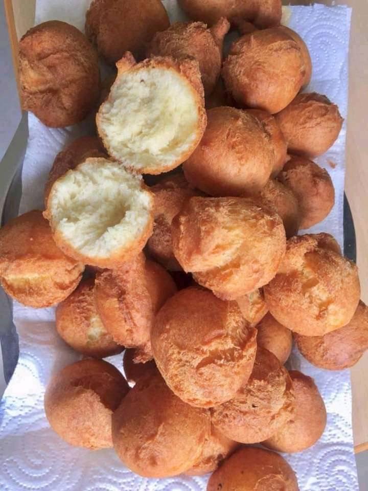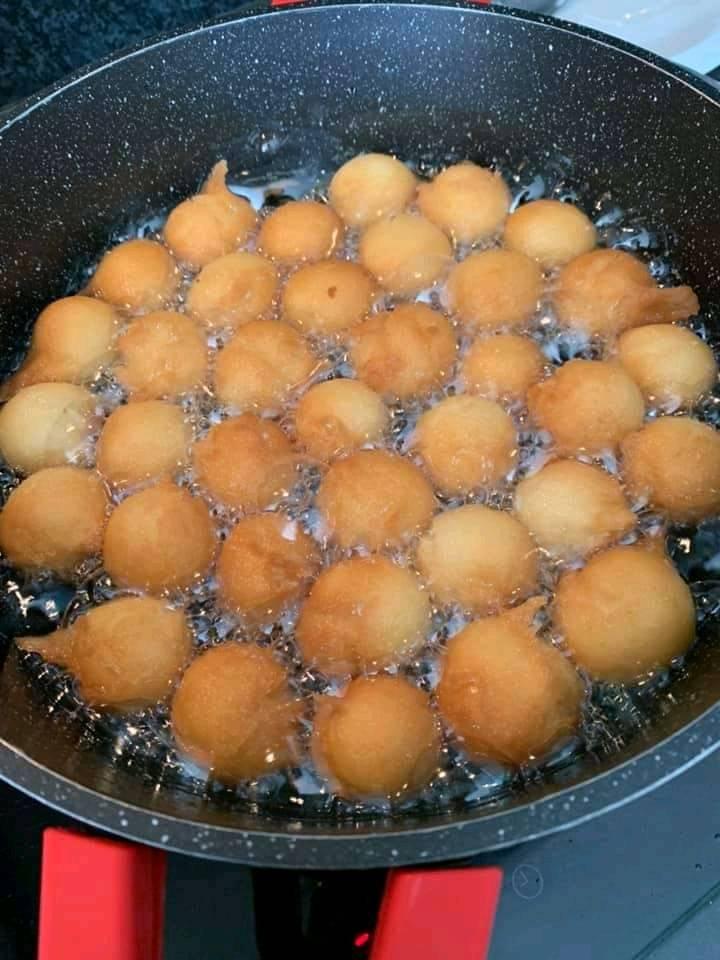 - Puis verser la pâte en formant des boules soit avec les mains (comme pour les beignets haricots), soit avec une cuillère ordinaire, soit avec une cuillère à glace, ou une petite bouteille avec le bouchon troué ( la vous versez la pâte dans la bouteille vous refermer et vous faites pression sur la bouteille pour faire descendre la pâte dans l’huile et vous vous servez d’un ciseaux pour couper la pâte et permettre qu’elle tombe dans l’huile.