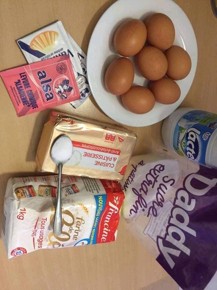 - Dans un petit bol mélanger la levure chimique avec le lait tiède.