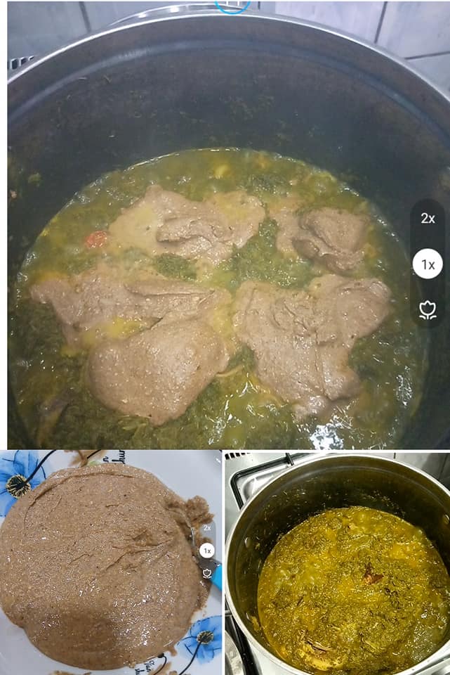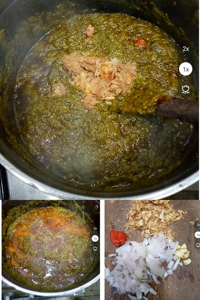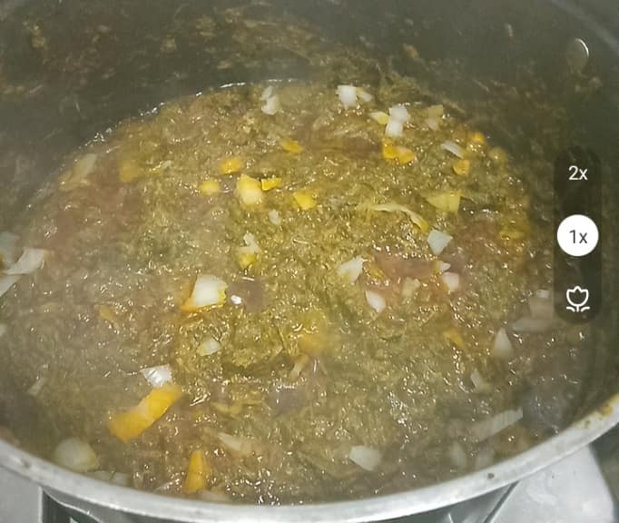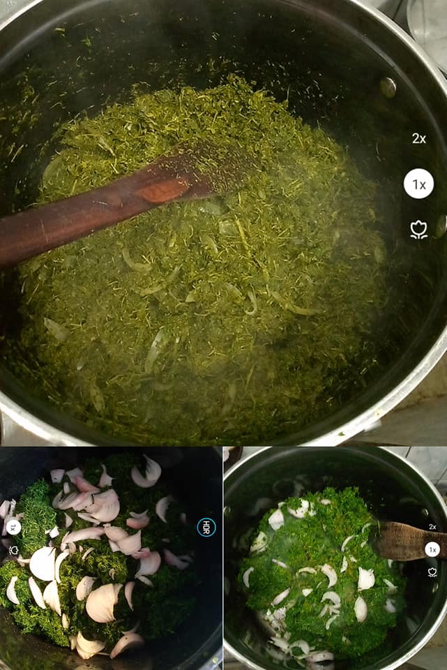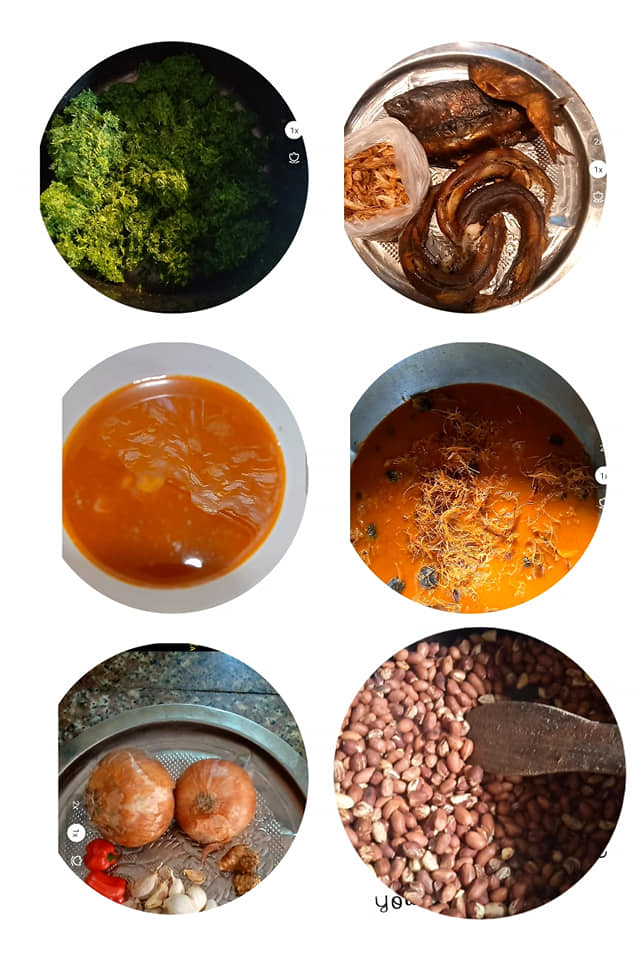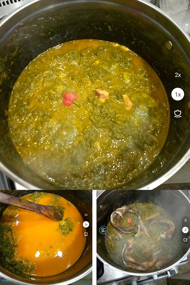 Quand ça aura bien bouilli pendant 25minutes, rajouter de l’eau et les poissons fumés et secs. Saler a ce moment