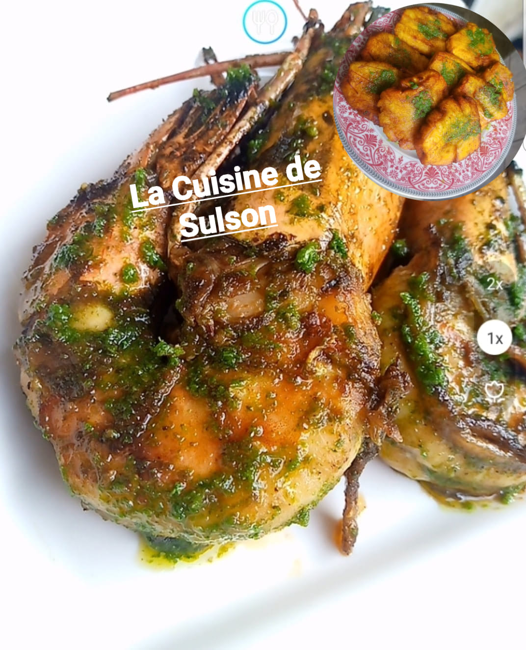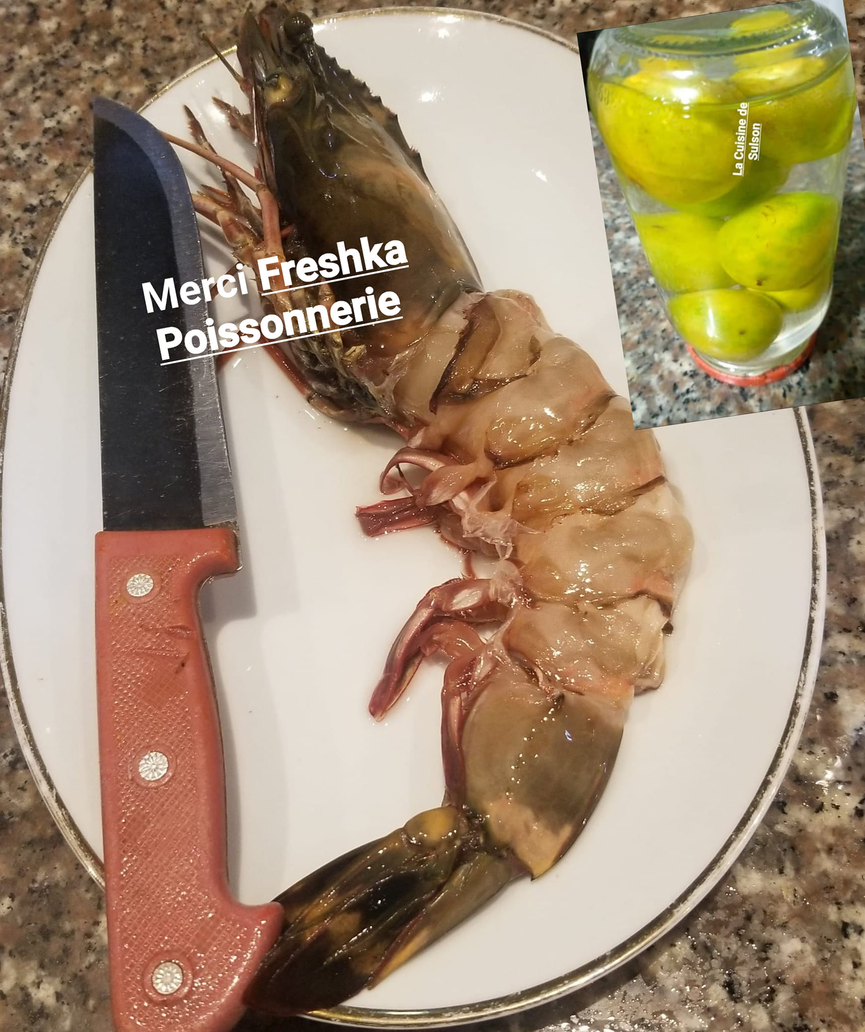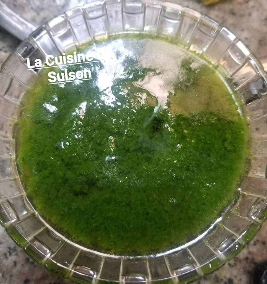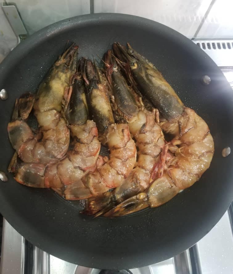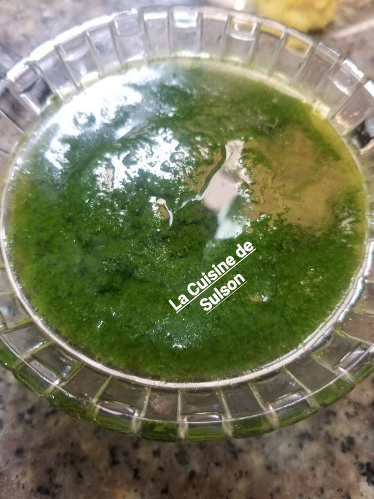 Apprêter la marinade. Pour un kilo de gambas, 1sachet epice the chef poisson et 1 sachet epice the Chef kankan. Sel jus d’un demi-citron et huile.