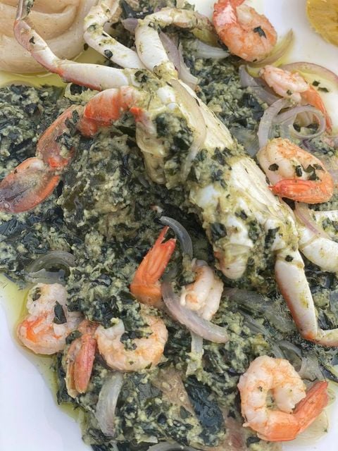- Nettoyez les crevettes, les crabes ,les faire cuire dans une eau salée avec un peu d’oignons ,d’ail et de poivre(facultatif)